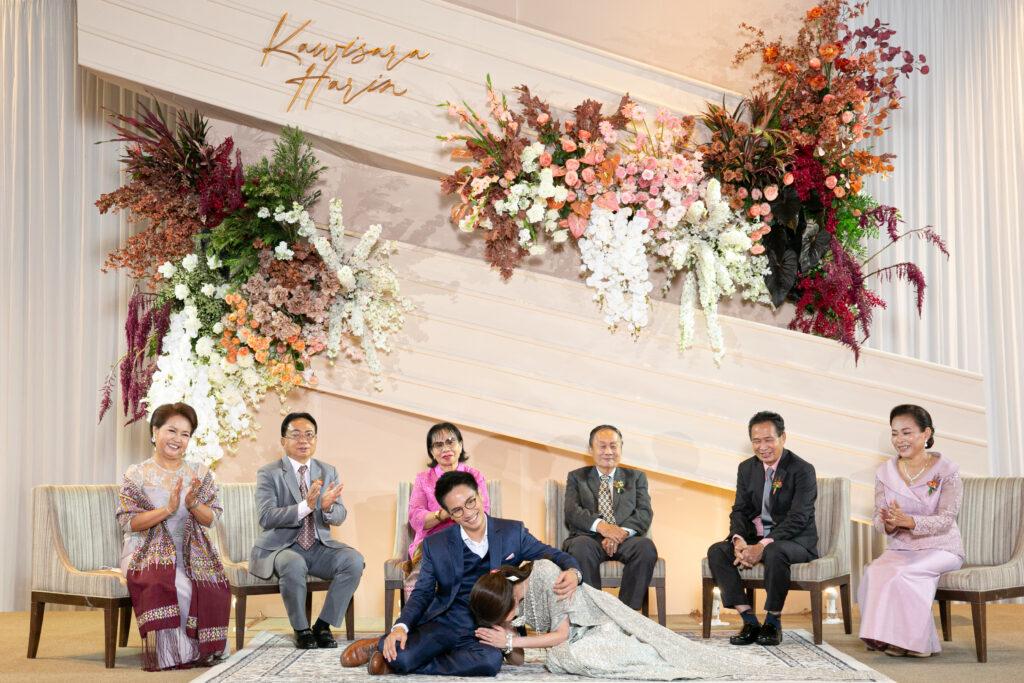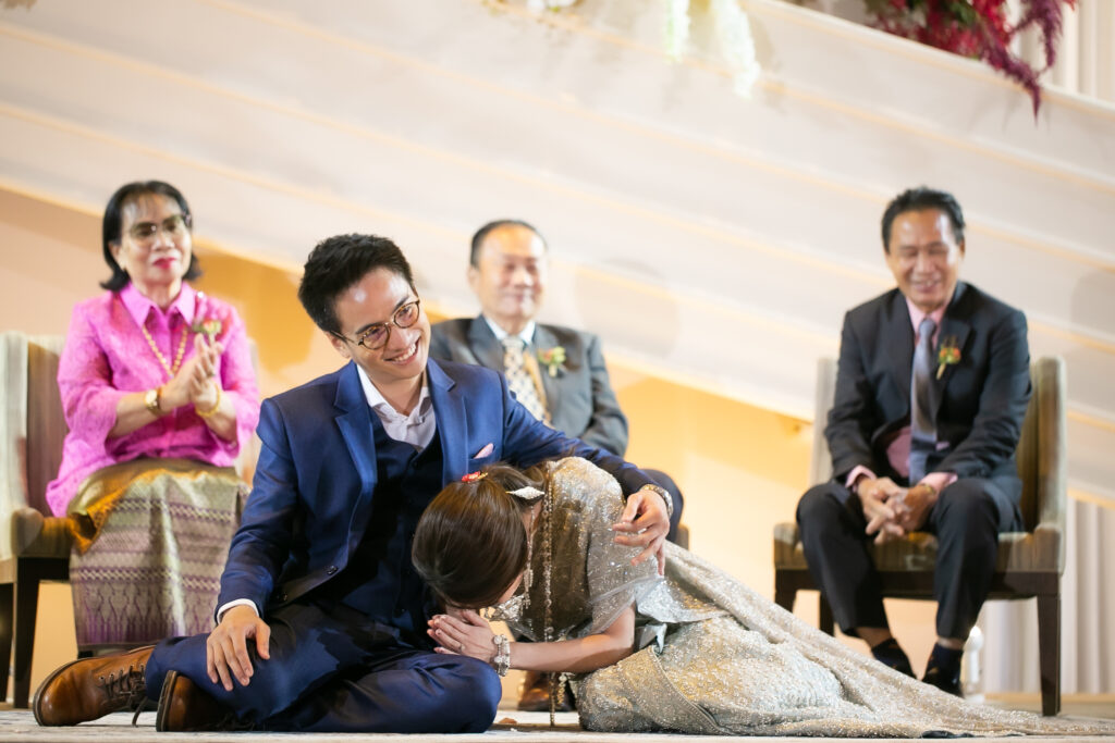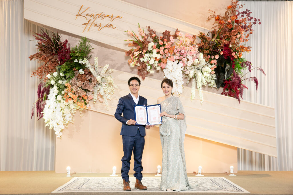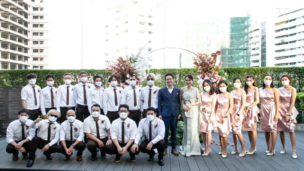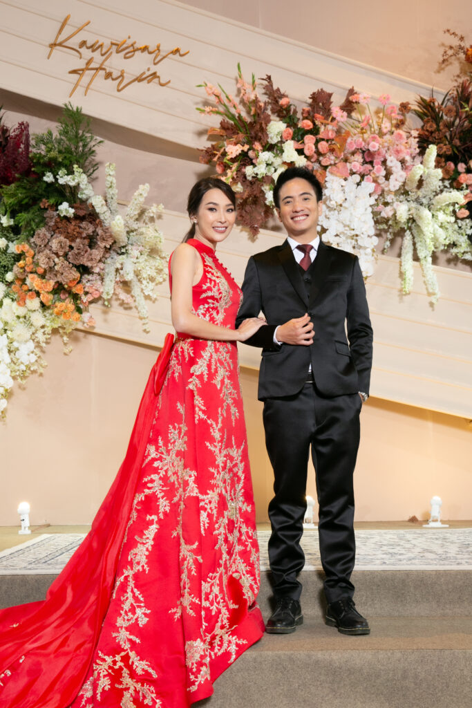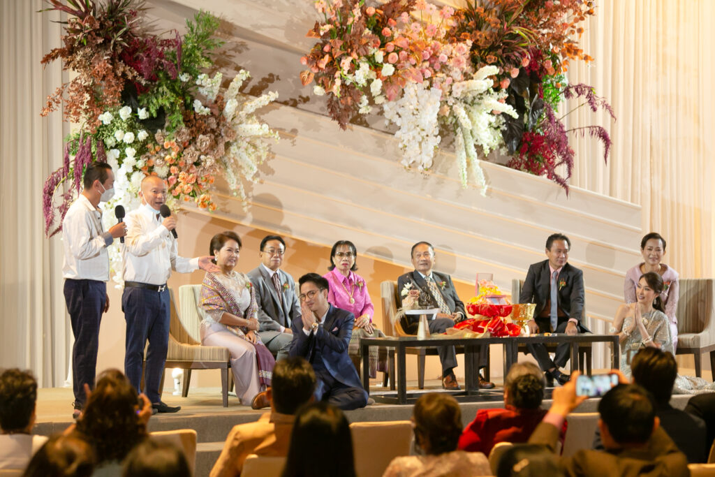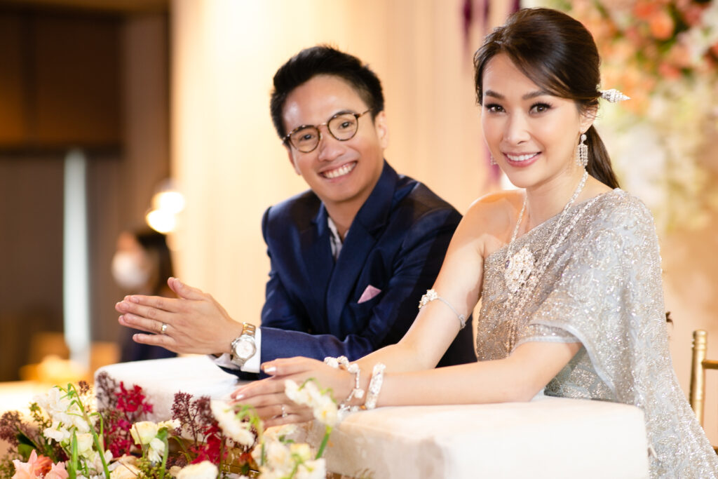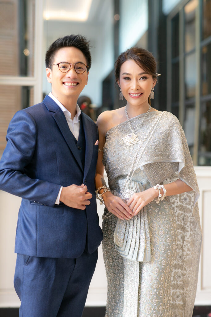 พิธีเช้าเริ่มต้นขึ้นอย่างงดงามด้วยบ่าวสาวที่มาในชุดแต่งงานดีไซน์ใหม่สุดพิเศษจากแบรนด์ Mirror Mirror Bangkok ที่ทำมาเพื่อวันสำคัญนี้โดยเฉพาะ พร้อมกับบรรยากาศในงานวิวาห์ที่เต็มไปด้วยความชื่นมื่นด้วยพิธียกขันหมากแบบไทย และยกน้ำชาแบบจีน ซึ่งงานนี้เพื่อนคนสนิทในวงการเพลงต่างมาร่วมแสดงความยินดีกันอย่างอบอุ่น อาทิ ศิลปินจากค่าย Smallroom วง zeal และแก๊งสามช่า หม่ำ เท่ง โหน่ง เป็นต้น โดยงานนี้นักร้องหนุ่มและแฟนสาวได้ให้สัมภาษณ์กับสื่อมวลชนว่า