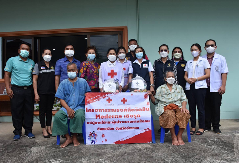 นายกเหล่ากาชาดอ่างทอง ฉีดวัคซีนเชิงรุก Moderna เข็มแรกให้แก่ผู้ป่วยติดเตียง ผู้สูงอายุ และผู้ป่วยกลุ่มเปราะบางในชุมชน
