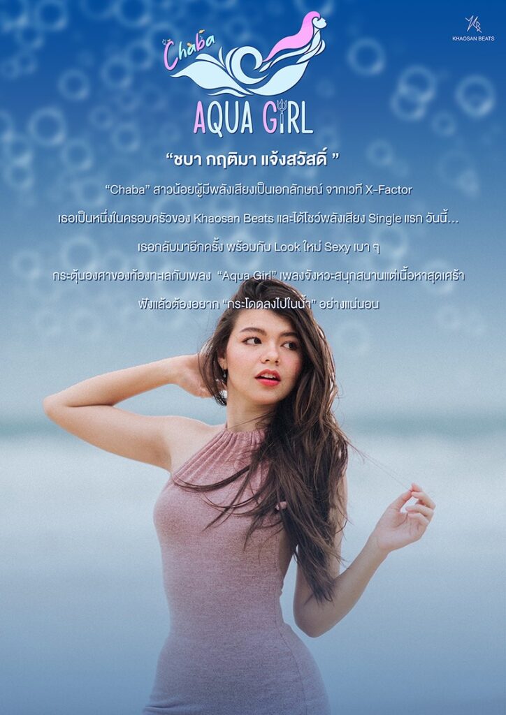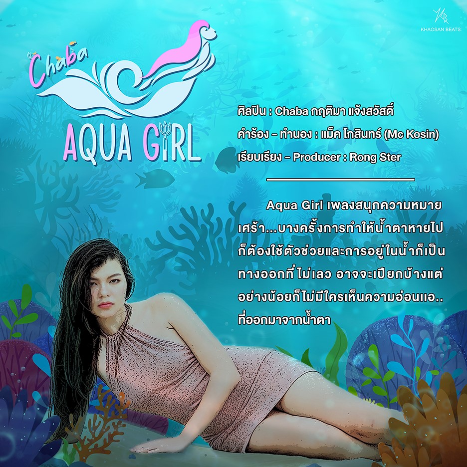 ศิลปินสาวผู้แจ้งเกิดจากเวที The X Factor Thailand มีพลังเสียงเป็นเอกลักษณ์ ชบา กฤติมา แจ้งสวัสดิ์ จากค่าย Khosan Beat ส่งซิงเกิ้ลใหม่ล่าสุด “Aqua Girl” เพลงจังหวะสนุกแต่เนื้อหาสุดเศร้า ภายใต้การดูแลของ ณรงค์ เดชะ โปรดิวเซอร์คู่ใจ กับนิวลุคส์สไตล์ เซ็กซี่เบาๆ งานนี้ชบาเผยว่า ทั้งดีใจทั้งเซอร์ไพรส์ที่ได้ร้องเพลงนี้ เพราะชอบทั้งจังหวะ ทั้งดนตรี และได้ดีไซด์การร้องแบบใหม่อีกด้วย