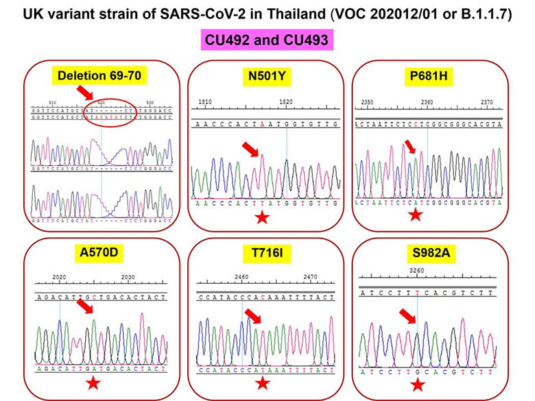 ศาสตราจารย์ นพ.ยง ภู่วรวรรณ หัวหน้าศูนย์เชี่ยวชาญเฉพาะทางด้านไวรัสวิทยาคลินิก ภาควิชากุมารเวชศาสตร์ คณะแพทยศาสตร์ จุฬาลงกรณ์มหาวิทยาลัย เปิดเผยข้อมูลผ่านเฟสบุ๊กส่วนตัว ระบุว่า พบผู้ป่วยโควิด-19 สายพันธุ์อังกฤษกลายพันธุ์ พบในประเทศไทย ที่มาจากครอบครัวผู้ป่วยชาวอังกฤษ 4 คน เดินทางมาจากเมืองเคนท์ อังกฤษ เข้าพักในสถานที่กักตัว แม่กับลูกมีผลตรวจยืนยันว่าติดเชื้อก่อน จากนั้นพ่อก็มีผลตรวจเป็นบวก โดยศูนย์เชี่ยวชาญเฉพาะทางด้านไวรัสวิทยาคลินิก คณะแพทย์ศาสตร์ จุฬาลงกรณ์มหาวิทยาลัย ได้ถอดรหัสสายพันธุ์ พบเป็นสายพันธุ์อังกฤษ หรือที่เรียกว่า สายพันธุ์อังกฤษที่กลายพันธุ์ B.1.1.7 ซึ่งสายพันธุ์นี้เป็นสายพันธุ์ของอังกฤษ ที่กลายพันธุ์ ที่ทั่วโลกเฝ้าระวังกันมาก และมีการระงับเที่ยวบินจากอังกฤษ โดยสายพันธุ์นี้ทำให้การแพร่ระบาดได้ง่าย และกระจายอย่างรวดเร็ว อย่างไรก็ตาม สำหรับประเทศไทย สายพันธุ์นี้ไม่ได้ทำให้โรครุนแรงขึ้นและไม่เกี่ยวข้องกับประสิทธิภาพของวัคซีน ส่วนผู้ป่วยทั้ง 4 รายนี้ อยู่ในความควบคุมและระมัดระวังเป็นพิเศษ ไม่ให้เชื้อหลุดรอดออกมาได้ ผู้ป่วยยังรักษาอยู่ในโรงพยาบาล ในห้องความดันลบ และต้องมั่นใจว่าไม่มีเชื้อแล้ว จึงจะออกมา ดังนั้นโอกาสที่จะแพร่กระจายเชื้อในประเทศไทยจึงไม่มี