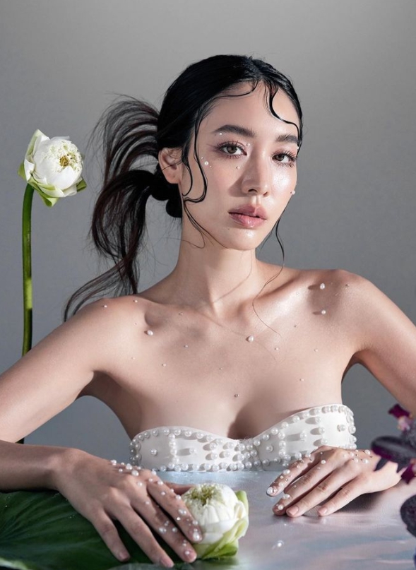 แถมยังแอบแซ่บกับชุดเกาะอกสีขาวอวดเซ็กซี่เบาๆ พร้อมแต่งหน้าใสๆมีไข่มุกเม็กเล็กติดตามใบหน้าและตามตัว ยิ่งเพิ่มดาเมจของสาวมินให้ดูงามสง่าอย่างนางมัจฉา พร้อมเขียนแคปชั่นว่า “พาเงือกน้อย มาลอยกระทง”