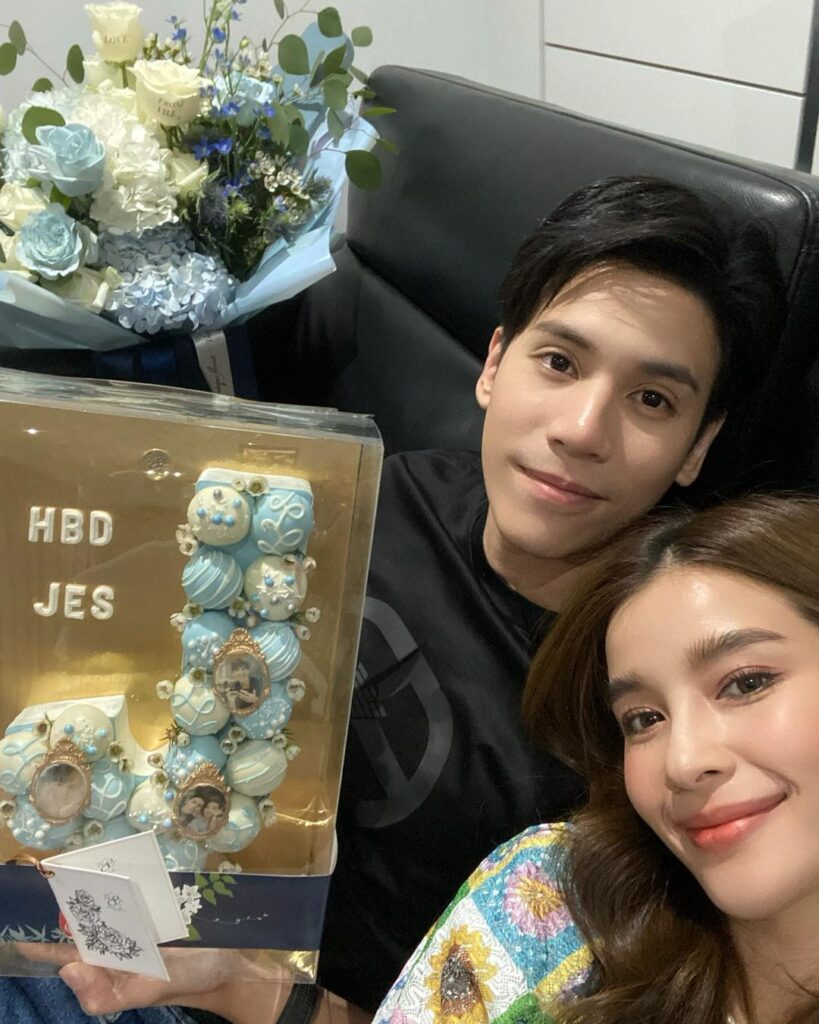 “ช่วงโควิดก็ได้เจอวิวตลอด เขามากินข้าวที่บ้าน เพราะออกข้างนอกไม่ได้ ในโซเชียลดูเป็นคนคลั่งรักมาก ก็ไม่นะ ต้องไปถามเขาว่าผมคลั่งรักไหม แค่เข้าไปแซวเขาเวลาลงรูปสวยหรือเซ็กซี่นิดๆ ยอมรับว่าหวง แต่ว่าเราก็ค่อนข้างไว้ใจกัน ทำในสิ่งที่ตัวเองมองว่าสมควร เชื่อว่าเขารู้ความพอดีอยู่ตรงไหน เราเลยไม่ค่อยเข้าไปห้าม ส่วนเขาไม่ลงรูปคู่ ก็ไม่ได้น้อยใจ สำหรับผมมันคนละเรื่องกันระหว่างชีวิตจริงกับโซเชียล คือเราไม่จำเป็นต้องบอกทุกคนว่าเราอยู่ด้วยกัน ทางด้านวันครบรอบก็ปีละครั้ง ต้องมีอะไรทำให้กัน แต่ถ้าทุกเดือนคงไม่ไหว ตอนนี้ก็3ปีแล้วที่คบกัน ไม่ค่อยกลัวอาถรรพ์เลข3
