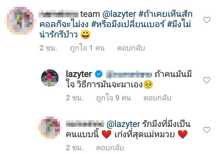 และยังมีเพื่อนของเธออีกคนที่เข้ามาคอมเมนต์ว่า “team @lazyter #ถ้าเคยเห็นสักคอลก็จะไม่งง #หรือมึงเปลี่ยนเบอร์ #มึงไม่น่ารักรึป่าว” ทางด้าน เธอ ก็คอมเมนต์กลับด้วยว่า “ถ้าคนมันมีใจ วิธีการมันจะมาเอง” ส่วนการที่สาวเธออกมาเคลื่อนไหวแบบนี้ ทำให้หลายคนสงสัยจะเกี่ยวข้องกับปมชีวิตคู่หรือไม่นั้น ก็ต้องติดตามกันต่อไปจ้า