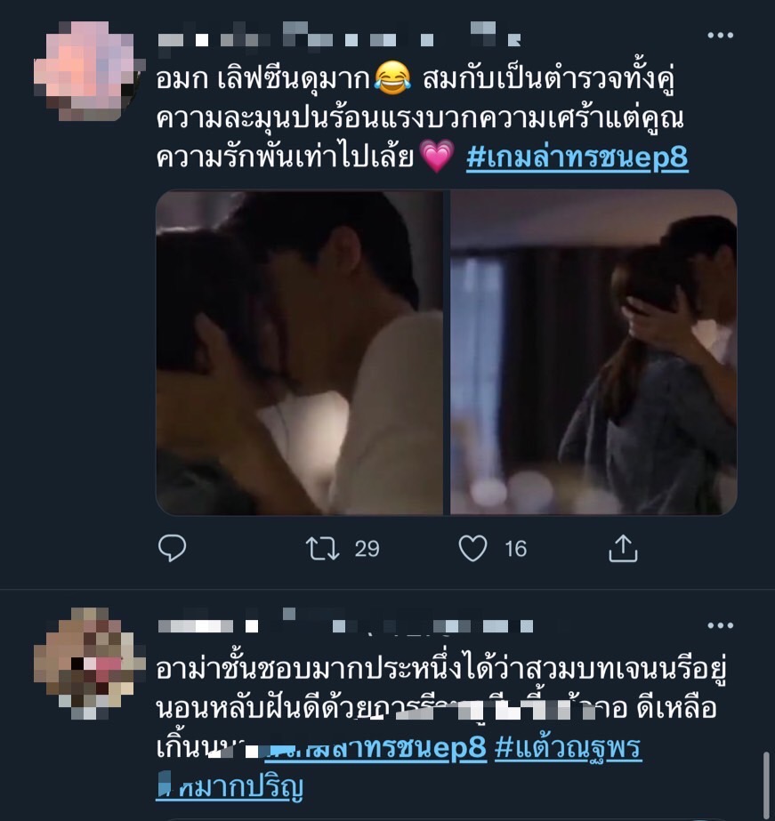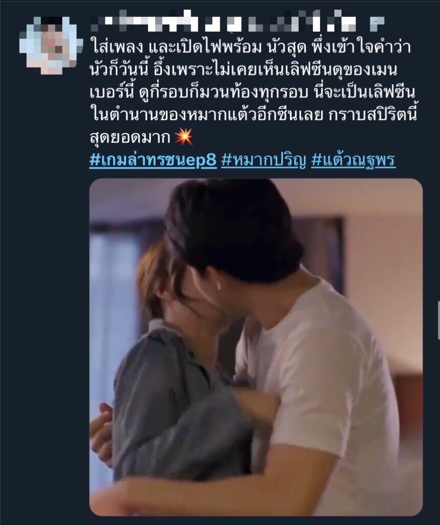 แน่นอนว่าฉากเลิฟซีนครั้งนี้ทำให้เหล่าแฟนคลับกรี๊ดกร๊าด หัวใจจะวายจนทำทวิตเตอร์แทบระเบิด เรียกว่ามือข้างหนึ่งถือรีโมทอีกข้างถือไม้เรียวรอกันเลยทีเดียว ชาวเน็ตว่ายังไงกันบ้างวันนี้รวบรวมไว้ให้ท่านแล้ว ไม่ว่าจะเป็น มูฟออนไม่ได้ น้อยแต่มากของจริง, นนนี่ผู้คลั่งรัก, ออกซิเจนต้องเข้า!! สารวัตรทำช็อคไปเลย, จูบดุที่สุดของหมาก ปริญ แล้วค่ะ เรื่องหน้าขอแบบเน้!!!, นนท์ไม่ปล่อยให้เจนนรีหลุดมืออีกแล้ว…ซีนนี้คือเกินคาดมาก…นุ้งแต้วไม่เคยเล่นแบบนี้เลย…เรื่องนี่คือสุดจริง,