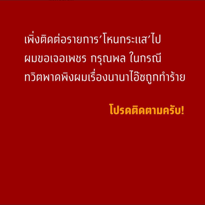 เรื่องราวชักจะบายปลายขึ้นเรื่อยๆแล้ว ระหว่างผู้กำกับชื่อดัง ต้อม ยุทธเลิศ กับ นักแสดงหนุ่ม เพชร กรุณพล ที่ออกมาพาดพิงถึง จากกรณีมีข้อพิพาทปมทะเลาะ ทำร้ายร่างกาย ไอซ์ รักชนก นักเคลื่อนไหวทางการเมือง แต่เรื่องราวชักไปกันใหญ่ เมื่อผู้กำกับดังออกมาทวิตข้อความท้าเจอหน้าในรายการโหนกระแส