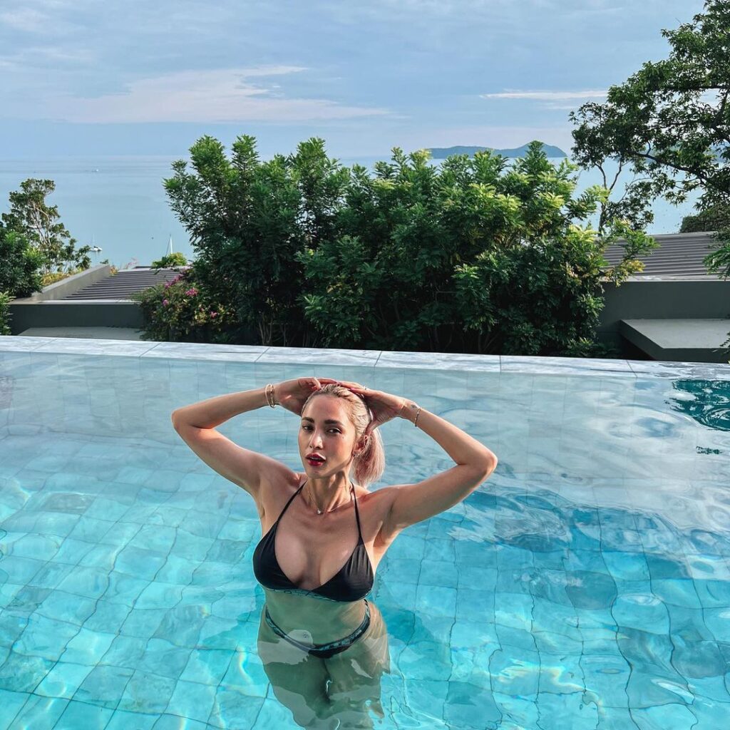ก่อนหน้านี้จัดให้ไปแล้วกับบิกินี่สีหวานและท่านั่งอาบแดดที่เรียกว่าเผ็ดเด็ดทุกท่วงท่า รวมถึงอีกเซ็ตกับบิกินี่สีดำสุดจี๊ดโชว์บั้นท้ายขาวเด้ง และอกภูเขาไฟนั่งชิลริมขอบสระ เผยให้เห็นสรีระที่รู้เลยว่าดูแลมาเป็นอย่างดี