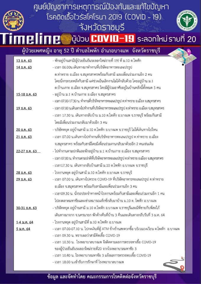 ผู้สื่อข่าวรายงานว่า นายรณภพ เหลืองไพโรจน์ ผู้ว่าราชการจังหวัดราชบุรี พร้อมนายวิสาห์ พูลศิริรัตน์ รองผู้ว่าราชการจังหวัดราชบุรี และแพทย์หญิงปาจรีย์ อารีย์รบ นายแพทย์สาธารณสุขจังหวัดราชบุรี แถลงสถานการณ์โควิด-19 ของจังหวัดราชบุรี แถลงถึงกรณีมีการรายงานข่าวว่าจะมีการตั้ง รพ.สนามใน จ.ราชบุรี เพื่อนำผู้ป่วยโควิด-19 มารักษานั้น จนทำให้ประชาชนในพื้นที่เกิดความวิตกกังวล เรื่องนี้ได้รับการยืนยันจากผู้บริหารระดับสูงแล้วว่าไม่มีการสร้าง รพ.สนามตามที่ได้กล่าวข้างต้นแต่อย่างใดทั้งในค่ายทหารหรือที่อื่นๆในพื้นที่จังหวัดราชบุรี ขอให้ประชาชนสบายใจได้ แต่จังหวัดมีการสร้าง รพ.สนามเตรียมไว้ตั้งแต่โควิด-19 ระบาดรอบแรกแล้วเพื่อรองรับผู้ป่วยชาวราชบุรีหากเกิดการระบาดที่รุนแรงกว่าเดิม ส่วนวันนี้(6 ม.ค. 64) พบผู้ติดเชื้อโควิด-19เพิ่มอีก 4 คน รวมสะสมระลอกใหม่เป็น 20 คน รักษาหายแล้ว 9 คน โดยผู้ติดเชื้อรายใหม่คนที่ 17 เป็นหญิง อายุ 25 ปี เป็นชาว ต.บ้านสิงห์ อ.โพธาราม รายที่ 18, 19 และรายที่ 20 อายุ 50, 49 และ 52 ปี ตามลำดับ เป็นชาวต.โพหัก อ.บางแพ เดินทางไปทำงานที่โรงงานใน จ.สมุทรสาครพร้อมกัน ปัจจุบันผู้ป่วยเข้ารับการรักษาที่ รพ.โพธาราม และ รพ.บางแพ แล้ว ขณะที่ การดำเนินการมาตรการป้องกันและควบคุมการแพร่ระบาดของเชื้อโควิด-19 ซึ่งได้ดำเนินการปิดสถานที่เสี่ยงหลายแห่งแล้วส่วนใหญ่จะไม่ส่งผลกระทบในชีวิตประจำวันของประชาชน เช่นสถานที่เล่นการพนัน โต๊ะสนุ๊ก บิลเลียด สนามมวย ที่สอนมวย สนามเด็กเล่น เครื่องเล่น สวนน้ำ ร้านเกมส์ สระว่ายน้ำ เป็นต้น ส่วนงานบวช งานแต่ง งานตามประเพณีจัดได้แต่ถ้าเกิน 100 คน ต้องขออนุญาตนายอำเภอก่อน ทั้งนี้สามารถดูประกาศและคำสั่งมาตรการควบคุมโควิด-19ของจังหวัดราชบุรี อย่างไรก็ดี จังหวัดราชบุรียังไม่มีการห้ามเดินทางเข้าหรือออก แต่ขอความร่วมมือให้งดเดินทางก่อน ส่วนผู้ที่กลับมาจากจังหวัดหรือสถานที่เสี่ยงขอให้รายงานตัวที่ กำนัน ผู้ใหญ่บ้าน และเจ้าหน้าที่ อสม.ในพื้นที่เพื่อลงทะเบียนและคัดกรองในเบื้องต้น