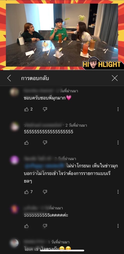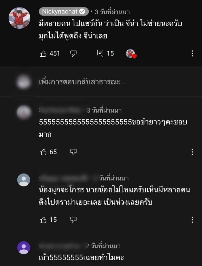 ล่าสุดทางทางหนุ่ม นิกกี้ เอง ก็ได้มีการโพสต์คอมเมนต์ในช่องยูทูปตอนดังกล่าว เพื่อเคลียร์ประเด็นดราม่าว่า “มีหลายคนไปแชร์กันว่าเป็นจีน่า ไม่ช่ายนะครับ มุกไม่ได้พูดถึงจีน่าเลย”