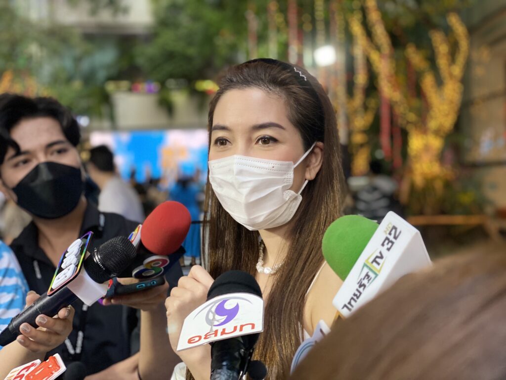 “ไม่ๆ คือก่อนหน้านี้ไปต่างประเทศใชมั้ย แล้วก็ไปนานมาก พอกลับมาก็ต้องอยู่ภูเก็ตอีก 2 อาทิตย์กักตัว หลังจากนั้นก็มีทริปไปทำบุญไหว้พระขึ้นถ้ำอะไรต่างๆ ไม่ได้ขอเรื่องความรักเลย ไม่เคยขอ ขอเงิน (หัวเราะ) ขอธุรกิจค่ะ ขอเซวาให้เจริญรุ่งเรือง ตอนนี้มันต้องอย่างนี้แล้ว (หัวเราะ) โควิด 2 ปีก็เหนื่อยนิดนึง แต่ก็ยังดีที่มันไปได้ค่ะ ลูกค้าก็ยังไว้ใจและใช้ของเราอยู่ แต่ปีหน้าก็หวังเยอะเหมือนกัน เราก็ยังดูแลน้องๆ ในทีมเหมือนเดิม จะบอกว่าบริษัทวุ้นพนักงานไม่ได้เยอะมาก ก็เลยไม่มีใครออกไปไหน ทุกคนก็ยังอยู่ และเรายังไหวอยู่ เจ็บเยอะไหม ไม่ถึงขั้นนั้น แต่มันก็มี มันก็เสียดาย 2 ปีที่เราน่าจะโกยได้เยอะกว่านี้ แต่ก็ยังดีที่เรายังทำให้แบรนด์เรายังอยู่ในใจของประชาชนอยู่ได้ เพราะเราก็เสียดายบางคนทำมาแล้วท้อก่อน แต่เราก็สู้ ไม่ว่าจะเกิดปัญหาอะไรเราก็ไปต่อได้ แต่ปีหน้าน่ากลัวมาก โปรเจ็กต์เยอะมาก ก็เตรียมเหนื่อยค่ะ ก็หวังว่าเศรษฐกิจจะดีค่ะ”