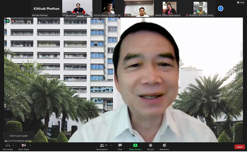 ทางด้าน ศ.นพ.กำธร พฤกษานานนท์ อุปนายก สนจ. กล่าวกับอาสาสมัครว่า “ขณะนี้กำลังจับตาดูการแพร่ระบาดของโควิดสายพันธุ์โอไมครอนในต่างประเทศอย่างใกล้ชิด ซึ่งได้แพร่ระบาดไปแล้วอย่างรวดเร็วมากกว่า 60 ประเทศ รวมถึงประเทศไทยด้วย ที่น่ากังวลคือแม้ว่าเราจะฉีดวัคซีนแล้วก็ยังมีโอกาสเสี่ยงติดเชื้อได้อยู่ แต่จะมีอาการน้อย หรือแทบจะไม่แสดงอาการ จึงไม่รุนแรงถึงชีวิต ดังนั้น การกักตัวแยกรักษาตัวอยู่ที่บ้าน ทำ HI จึงเป็นแนวทางที่เหมาะสมและยังจำเป็นต้องได้รับการติดตามอาการอย่างใกล้ชิดเช่นกัน ในส่วนกล่องรอดตายที่ สนจ. ดำเนินการสนับสนุนภารกิจของสถาบันป้องกันควบคุมโรคเขตเมือง (สปคม.) กรมควบคุมโรคอยู่นั้น เราได้เตรียมความพร้อมให้สามารถขึ้นระบบ Virtual Ward ได้ทันทีภายใน 24 ชั่วโมงที่ได้รับการร้องขอ และยังเปิดรับอาสาสมัครกล่องรอดตายรุ่นใหม่เข้ามาฝึกทักษะ อบรมเทคนิคการดูแลผู้ป่วยผ่าน E-Learning Platform ช่วยให้อาสาสมัครสามารถเรียนรู้ ดูซ้ำ ทบทวนเนื้อหาได้ตลอดภายในระยะเวลาสั้น ๆ เพียง 30 นาที”