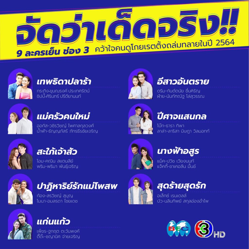 จัดว่าเด็ดจริง !! 9 ละครเย็น ปี 2564 ช่อง 3 ครองใจคนดูโกยเรตติ้งถล่มทลาย
