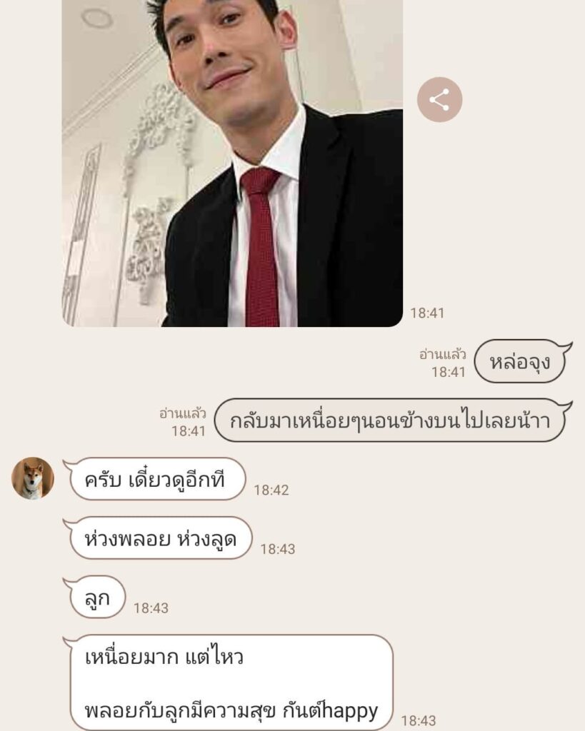 โดยสาวพลอยได้โพสต์ภาพ และข้อความแชทที่พูดคุยกับหนุ่มกันต์ แชร์โมเมนต์สุดน่ารัก ที่สาวพลอยบอกกับกันต์ว่า “กลับมาเหนื่อยๆนอนข้างบนไปเลยน้า” และกันต์ได้ตอบว่า “ครับ เดี๋ยวดูอีกที ห่วงพลอย ห่วงลูก เหนื่อยมาก แต่ไหว พลอยกับลูกมีความสุข กันต์ Happy”