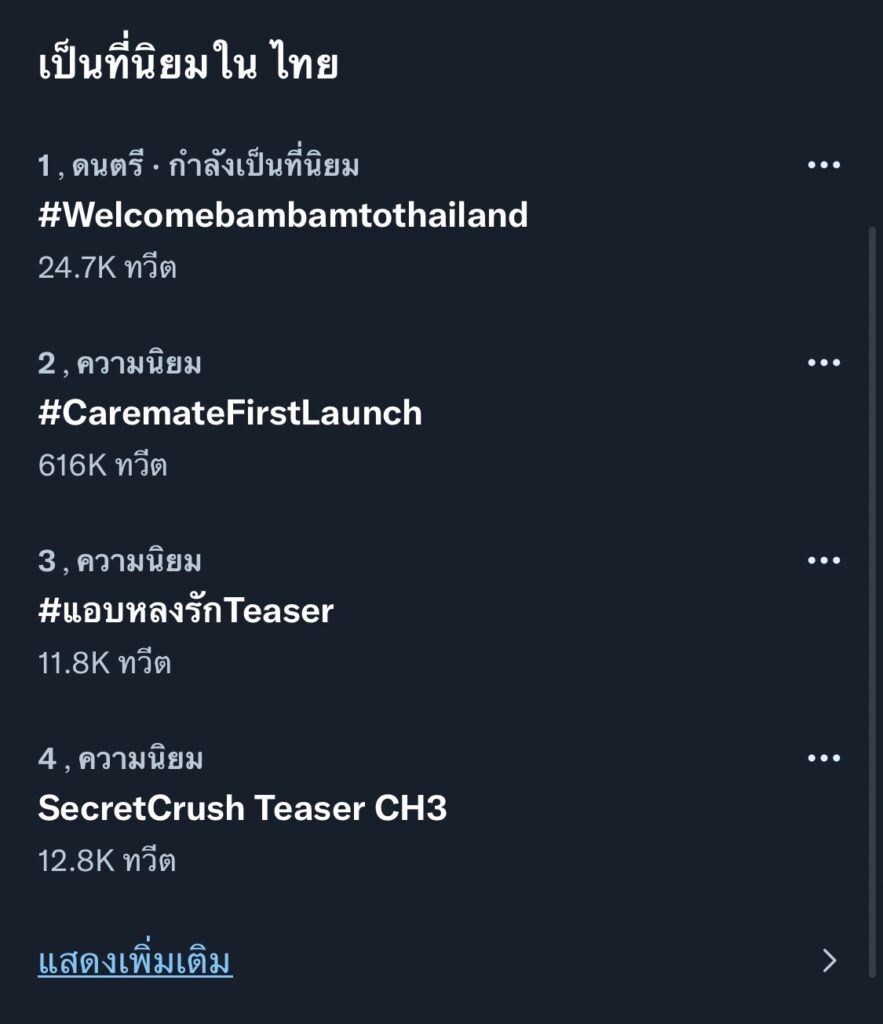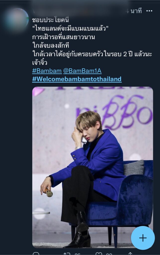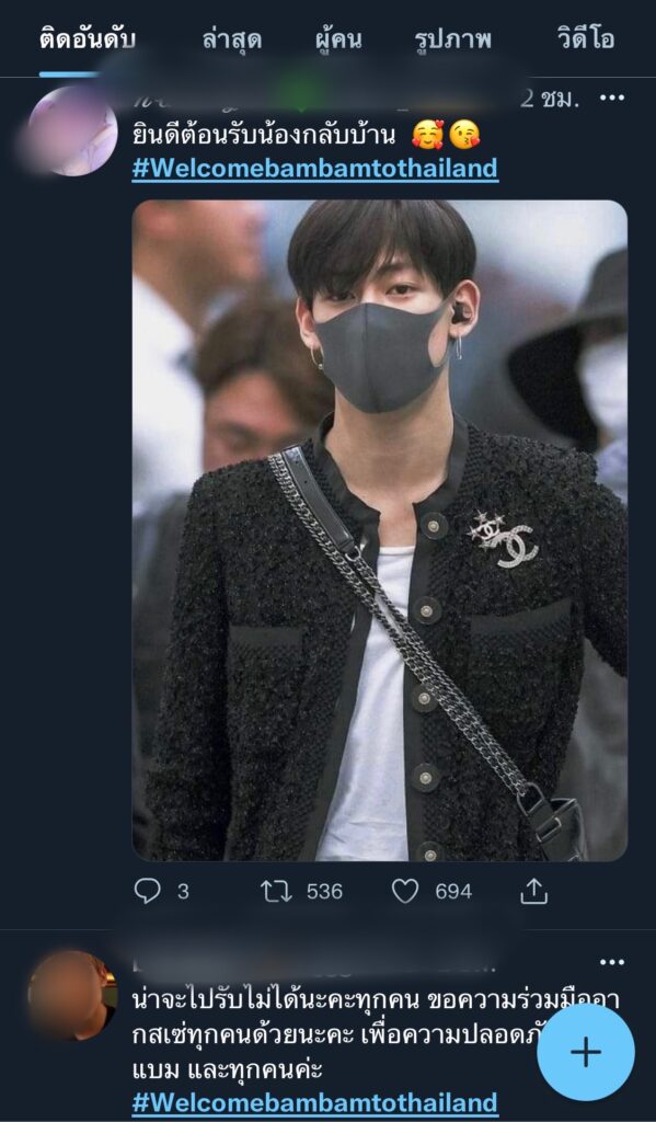 พลังของอากาเซ่ไทยไม่แพ้ชาติใดในโลกจริงๆจ้า เมื่อมีข่าวว่า ไอดอลเกาหลีสายเลือดไทยขวัญใจแฟนๆอย่าง “แบมแบม กันต์พิมุกต์” หรือ “แบมแบม GOT7” เตรียมเดินทางกลับบ้านเกิด ประเทศไทยในคืนนี้ ส่งผลให้ #Welcomebambamtothailand พุ่งติดเทรนด์อันดับหนึ่งบนทวิตเตอร์ในไทยไปเป็นที่เรียบร้อย