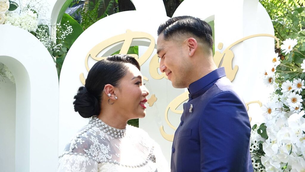 ดา “ตอนแรกก็สงสัยเหมือนกันค่ะ ว่าทำไมคนเขาถึงร้องไห้กันในงานแต่งงาน คือมันเป็นโมเมนต์ที่บางทีเราขอพรจากพ่อแม่ หรือขอพรจากผู้ใหญ่ มันเหมือนกับชีวิตได้รับโอกาสครั้งใหญ่ไปเลย ร้องออกมาเองเลย มันเหมือนแบบตั้งแต่เด็กจนโต ตัวดาเองไม่เคยคิดเลยว่าเราจะได้มาแต่งงานกับเพื่อนที่เราเคยรู้จัก เพราะมันเดินทางมาเป็น 10 กว่าปี กว่าจะมีโมเมนต์นี้ผู้ใหญ่เขาบอกให้เราผ่อนหนักเป็นเบา คนหนึ่งร้อน ให้อีกคนเย็น คือถ้ามีคนหนึ่งร้อน อีกคนก็ต้องให้อภัย คนเราอยู่กันได้นานๆ ต้องให้อภัยกันเยอะๆพอเราโตขึ้น มันก็มีเรื่องราวของครอบครัวเข้ามา อย่างเช่นคุณยายของดาที่แก่ขึ้น ดังนั้นเราก็เลยคุยกันว่า อยากให้คุณยายได้อุ้มหลาน ได้อุ้มเบบี๋ ซึ่งเราคิดว่ามันคงเป็นพรอันดีจากยาย หากเขาได้สัมผัสลูกของเรา ตอนนี้เรามีแพลนกันแล้ว ปล่อยธรรมชาติเลย เราอยากมีครอบครัวใหญ่ๆคิดว่าประมาณ 6 คนนะ ฝาแฝด 3 ครั้ง ตอนนี้เข้าใจแล้วค่ะว่าทำไมบางคนเขาถึงต้องทำฝาแฝดเลยทีเดียว เพราะแบบพอเราจะมาท้องตอนอายุ 35 แถมอยากมีลูก 3 คนด้วย มันก็คงจะต้องทำค่ะ ก็อยากลองเหมือนกัน อย่างต่ำน่าจะ 3 พยายามกันอยู่ เราให้เวลาธรรมชาติถึงประมาณช่วงเดือนมีนาคมค่ะ เพราะว่าถ้าเกิดเขามาแถวๆ เดือนมีนาคม เขาก็อาจจะได้เป็นปีเสือเหมือนแม่