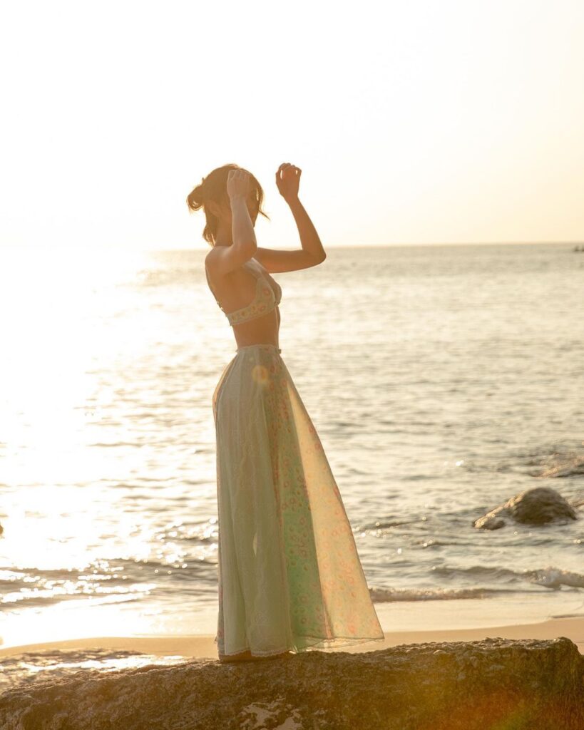 แต่ล่าสุดสาวใหม่ก็ขอเข้าโหมดอ้อนแฟนๆ กับชุดเดรสดำสวยหรู แต่คงคอนเซ็ปเปิดเอวโชว์ความเซ็กซี่ที่เป็นกิมมิกของเจ้าตัว ให้เห็นผิวขาว และซิกแพกเบาๆพอเป็นน้ำจิ้ม เดินยิ้มพริ้มริมขอบสระ พร้อมกับตั้งแคปชั่นอ้อนแฟนคลับเอาไว้ว่า “รักดาวิน้อยๆแต่ขอให้รักนานๆน้าาาา”