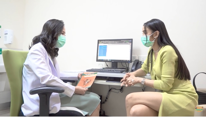 ก็เป็นวัตถุประสงค์ด้วยค่ะ มีการถามคุณหมอเรื่องนี้โดยตรง ถ้าสมมุติว่าแพทแพลนว่าจะมีลูกแต่ไม่ใช่เร็วๆ นี้ คุณหมอคิดว่าแพทยังไปไหวมั้ย? คุณหมอก็เลยแนะนำว่าอยากให้เก็บไข่เลยมั้ยคะ? เพราะว่าไข่ในวัยนี้น่าจะดีกว่าไข่ในวัยอีก 3 ปีข้างหน้า แพทก็เลยบอกว่าแพทไม่อยากเก็บ หมอก็บอกว่าเก็บเถอะ แพทก็เลยบอกสมมุติว่ามันไม่ใช่เร็วๆนี้หรอก หมอบอกถ้าในวัย 39 ปี ปิ๊งว่าจะมีไอเดียจะมีลูก ก็จะได้ไข่ในวัย 35 ปี ไข่ก็จะสมบูรณ์กว่าไข่ในวัย 39 ปี แล้วไข่ในวัย 39 ปีก็ไม่รู้ว่าจะสมบูรณ์เท่ากับในวัย 35 มั้ย ตอนนี้แพทเช็คอัพทั้งหมดแล้ว หน้าอกก็ไม่มีซี๊ดไม่มีอะไร เพราะแพททำทั้งอัลตร้าซาวด์และเมมโมแกรมแล้ว ครั้งแรกในชีวิตอยากบอกทุกคนเลยว่าไม่ต้องกลัว ไม่เจ็บเลย คือคนไปกลัวเพราะว่ามันมีการบีบ คือแพท โดนบีบมากว่าคนอื่นด้วยนะ หมอบอกว่าเคสของแพท คือ ตรวจครั้งแรก ตัวเล็ก และ มีก้อน คือเรามีซิลิโคนที่หน้าอก เพราะฉะนั้นการบีบแต่ละข้างจะเยอะกว่าคนอื่น เช็คปอดด้วยปอดเคลียร์คือสะอาด ผ่านการมีลูกมาแล้ว กังวัลเรื่องมวลกระดูกของแพทคือสมบูรณ์มวลกระดูกดีมากไม่มีปัญหาอะไรเลย ท้องล่างท้องบนก็ดีมากคลีนมาก หมอเลยแนะนำว่า เก็บไข่มั้ย คือก็ดีหมดกลัวว่าทำแล้วมีเอง จะเสียเงินฟรีมั้ย (หัวเราะ) ทีนี้ถ้าเราทำมาคลิปว่า “เรามาตรวจสุขภาพกัน” แล้วใครจะไปดูคลิปฉัน (หัวเราะ) พอเราบอกว่าเตรียมมีลูก นั่นไงเข้ามาดูกันใหญ่เลยน้า (ฮะฮ่า)