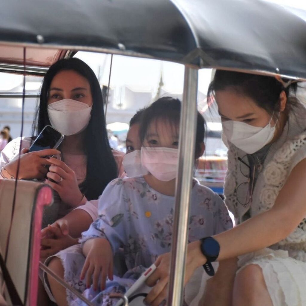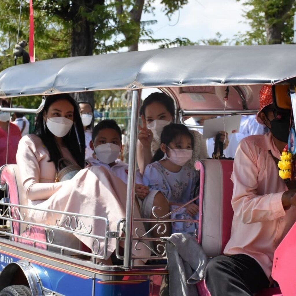 นอกจากนี้ยังมีภาพที่ “ตั๊ก บงกช” นั่งรถตุ๊กตุ๊กกับน้องข้าวหอม ซึ่งเป็นโมเมนต์ที่น่ารักและดีต่อใจมากๆเลยทีเดียว