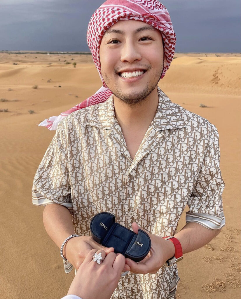 โดยสาวดิวได้โพสต์คลิปอวดโมเมนต์สุดโรแมนติก พร้อมประกาศข่าวดีว่า “ THE FIRST DAY OF THE LAST  CHAPTER OF OUR LIVES 01.01.22 #foreververafter” และโพสต์ถัดไปที่บอกว่า “𝐇𝐖 💍 𝐇𝐮𝐬𝐛𝐚𝐧𝐝 & 𝐖𝐢𝐟𝐞 ♡︎ วันนี้เป็นวันนึงที่ @jetsetseb แพลนเหมือนเคย จริงๆตัวดิวก็ไม่รู้ว่าเค้าจะพาไปไหนแต่ก็คิดไว้ว่าคงเป็นกิจกรรมที่นางวางแผนเอาไว้ตามเคย วันนี้เป็นวันที่ฝนตกทั้งวัน ท้องฟ้าอึมครึมมาก⛈ กิจกรรมเรามีทั้ง ส่องสัตว์ ดูธรรมชาติ ขี่อูฐ🐫 ดูเหยี่ยว🦅 .. จนมาถึงก่อนที่เราจะไปทานมื้อเย็นกัน ท้องฟ้าก็ยังคงอึมครึมเนื่องจากฝนพึ่งหยุดตก และอยู่ๆคุณเซปเค้าก็บอกให้พี่คนขับจอดข้างทางเพราะเห็นว่าวิวทะเลทรายสวยดีตรงนี้ และเค้าก็จูงดิวไปยืนบนทะเลทราย และพูดกับดิวว่า “𝐓𝐡𝐢𝐬 𝐢𝐬 𝐚 𝐠𝗼𝗼𝐝 𝐥𝗼𝐜𝐚𝐭𝐢𝗼𝐧, 𝐬𝐭𝐚𝐧𝐝 𝐡𝐞𝐫𝐞 .. 𝐬𝐭𝐚𝐧𝐝 𝐡𝐞𝐫𝐞” เราก็เข้าใจว่าออเครนางจะถ่ายรูปให้เรา และอยู่ๆนางก็ขุกเข่าลง หลักจากนั้น… พระอาทิตย์ก็ขึ้น คนรอบข้างร่วมยินดี เซปถามดิวว่า “𝐖𝐢𝐥𝐥 𝐘𝐨𝐮 𝐌𝐚𝐫𝐫𝐲 𝐌𝐞?” จริงๆก็ตอบแล้วว่า “𝐘𝐞𝐬 𝐈 𝐃𝐨” แต่นางไม่ได้ยิน นางเข้าใจแต่ว่าเราพูดว่า “𝐓𝐡𝐚𝐧𝐤 𝐲𝐨𝐮”😂 เซปจะใส่แหวนให้ดิวก็ไม่ใส่ จะให้เราหยิบใส่เอง จนเราต้องบอกให้เค้าเป็นคนใส่ 😂 เป็นเหตุการณ์ที่น่ารักดี น่าจดจำ เป็นธรรมชาติ (ธรรมชาติไม่ธรรมชาติดูจากผ้าที่โพกซะก่อน) และหลังจากขอแต่งงานขึ้นรถเพื่อมานั่งกินข้าวฝนก็กลับมาตกเหมือนเดิมยันตอนนี้.. ขอบคุณทุกอย่าง พูดตรงนี้คงยาวมาก แต่ใช่ค่ะ #wedidit และขอบคุณที่ฟ้าในพระอาทิตย์เป็นใจให้ดิวกับเซป☀️💍💖 The sun came through the second he went on his knee🌞💖”