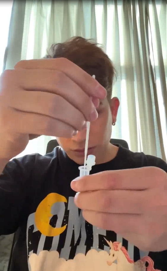 ซึ่งในคลิปการตรวจดังกล่าว เจ้าตัวยังได้ระบุแคปชั่นไว้ว่า “ตอนนี้ตรวจ Atk ไม่พบเชื้อแล้ว แต่ก็ยังกักตัวให้ครบวันตามกำหนดครับ”