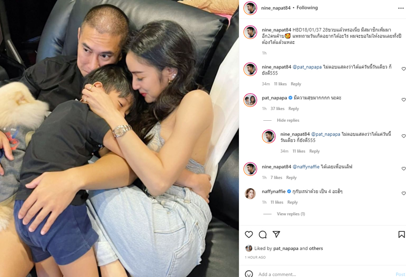 แต่ล่าสุดก็ทำเอาไอจีหวานจนน้ำตาลขาดตลาด เมื่อหนุ่มนาย ลงภาพสุดอบอุ่นที่มีสาวแพท และน้องเรซซิ่งอยู่ด้วย เป็นการฉลองวันคล้ายวันเกิดอายุครบ 28 ปีบริบูรณ์ พร้อมกับแคปชั่นบอกความในใจถึงสาว แพท ว่า “HBD18/01/37 28ขวบแล้วหรอเนี่ย มีสมาชิกเพิ่มมาอีก2คนค๊าบ🥰 แพทถามวันเกิดอยากได้อะไร ผมจะขอไม่ให้งอนเลยทั้งปี ต้องได้แล้วแหละ”