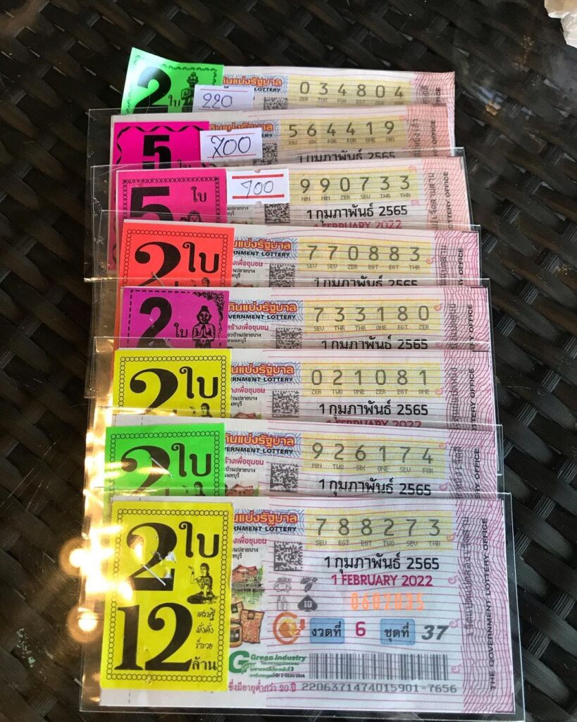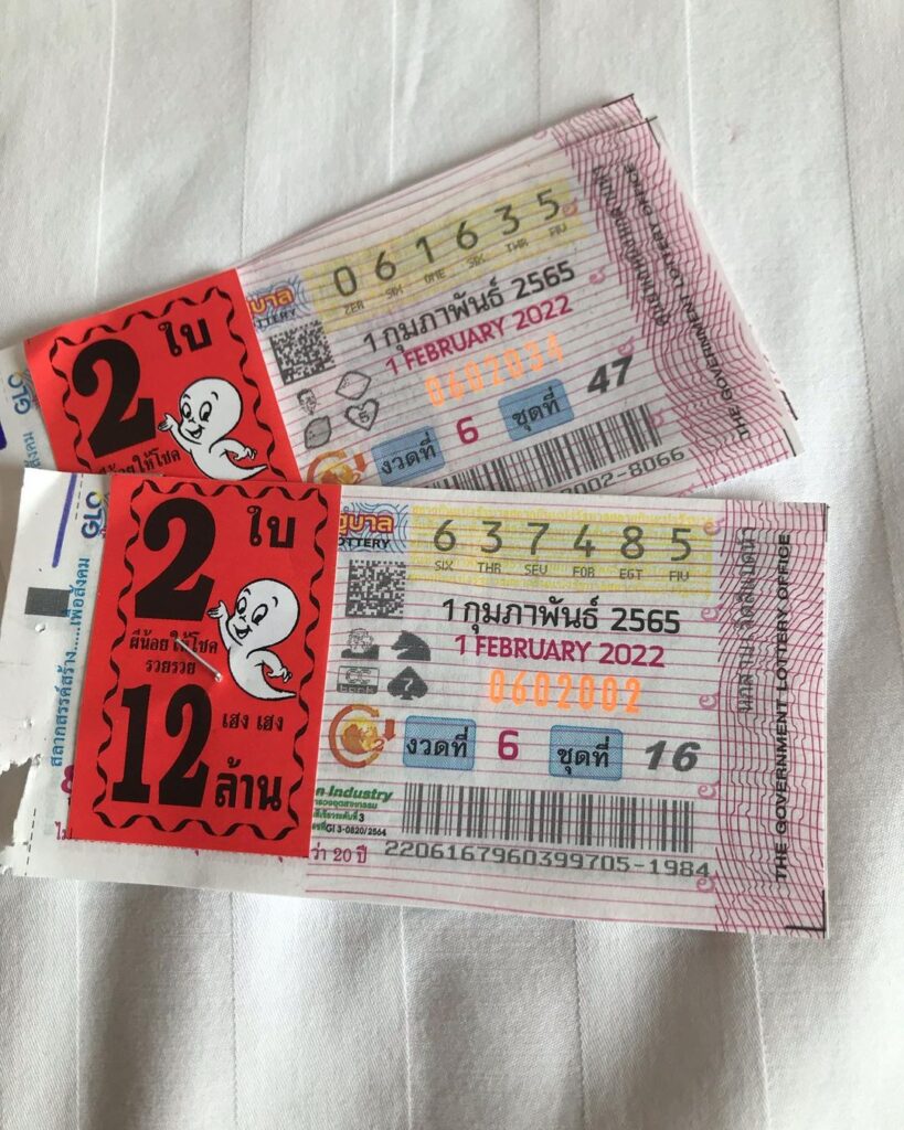 โดยเจ้าตัวได้บอกว่า “หลงอยู่ 2 ชุดในกระเป๋าตังค์ 🎉🎉 061 =2ใบ 485=2ใบค่ะ งวดนี้ งวดที่12😁 เก็บเล็กผสมน้อย แต่เก็บทุกงวด 🤣🎉”