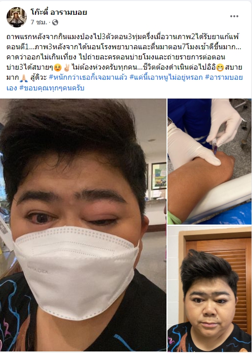 ตาบวมเป่ง! “โก๊ะตี๋ อารามบอย” แอ็ดมิทด่วน หลังแพ้แมงป่องขั้นรุนแรง