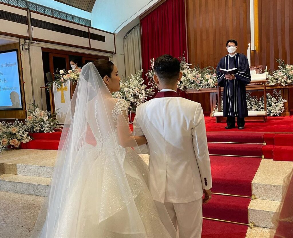 พิธีงานฉลองมงคลสมรสในครั้งนี้ถูกจัดขึ้น ณ คริสตจักรวัฒนา บรรยากาศอบอวนไปด้วยความสุขและรอยยิ้ม ของคู่บ่าวสาว และแขกที่เดินทางมาร่วมแสดงความยินดีเพื่อเป็นสักขีพยานความรักของทั้งคู่ อาทิ บี พีรพัฒน์ , โต้ง ทูพี ,พิจิกา เป็นต้น