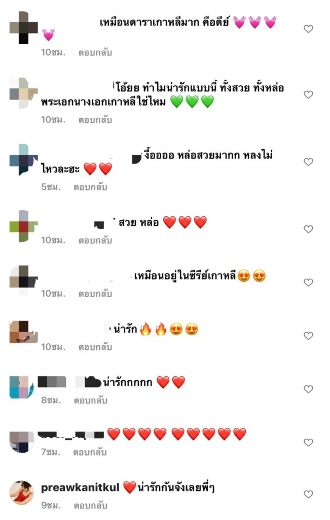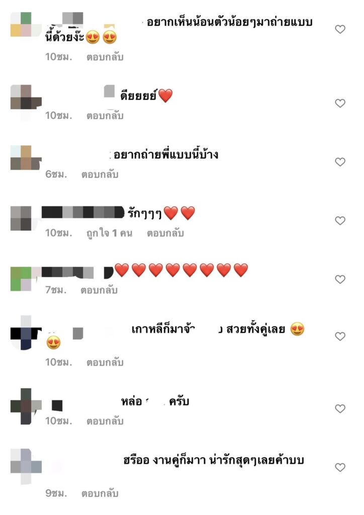 ซึ่งหลังจากเพื่อนดารานักแสดงและแฟนๆ ได้เห็นก็ต่างพากันเข้ามาคอมเมนต์ส่งหัวใจให้เป็นจำนวนมาก พร้อมยังแซวว่าหวานๆ ก่อนเทศกาลวาเลนไทน์เลยน๊า
