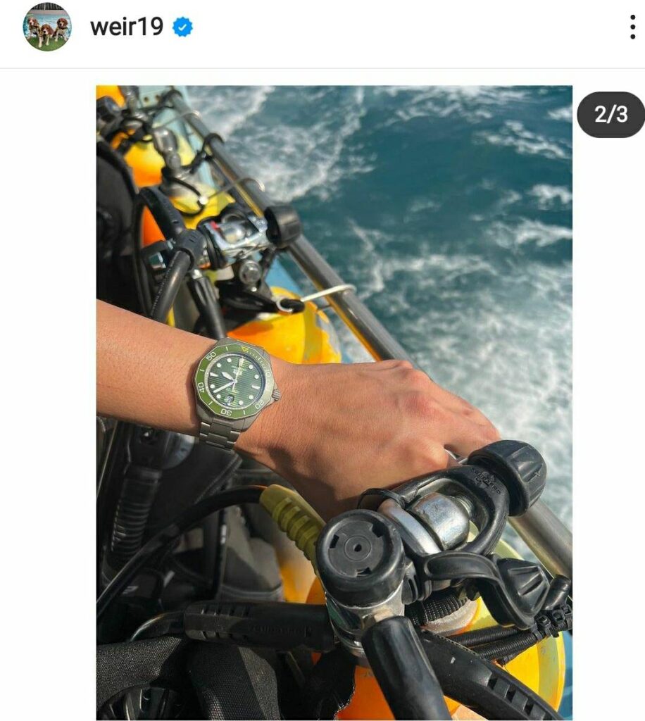 ก้าวเข้าสู่ปีที่ 2 ในฐานะ Friend of TAG Heuer หนุ่มเวียร์เผยว่าที่ยกให้ นาฬิกา TAG Heuer เป็นนัมเบอร์วันในใจนั้น เนื่องจากผูกพันกับแบรนด์นาฬิกาคลาสสิกระดับโลกสัญชาติสวิสนี้มานาน อีกทั้งยังเป็นนักสะสมตัวยง ซึ่งเรือนโปรดเรือนล่าสุด ต้องยกให้ Aquaracer Professional 200 นาฬิกาสปอร์ตสุดหรูคอลเลคชั่นใหม่ที่ตอบโจทย์สายลุย พร้อมเผยถึงเคล็ดลับการเลือกนาฬิกาว่า “ถ้าใส่นาฬิกาที่ดูดีและเหมาะกับไลฟ์สไตล์ตัวเอง จะยิ่งช่วยเสริมให้บุคลิกดีขึ้น บวกกับเป็นคนชอบการเดินทางและการผจญภัยทั้งภูเขาและทะเล ซึ่ง Aquaracer ถือว่าตอบโจทย์มาก ไม่ว่าจะเป็นดีไซน์หรือความแข็งแกร่ง ที่สำคัญสามารถใส่ดำน้ำได้แบบไม่ต้องกังวล” หนุ่มเวียร์เสริมอีกว่าตนเป็นคนใส่นาฬิกาจริงและเป็นสายลุย อย่างรุ่น Aquaracer Professional 200 นี่สามารถกันน้ำลึกได้ถึง 200 เมตร จึงตอบโจทย์ และช่วยทำให้ตนมั่นใจมากขึ้นเวลาออกทริป