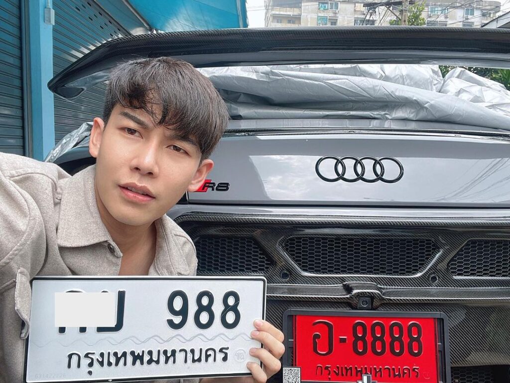 ซึ่งงานนี้ “ครูเต้ย” ก็ไม่กั๊ก โชว์เลขทะเบียนทั้งป้ายแดงป้ายขาวให้แฟนๆได้เห็นกันแบบไม่ต้องเสียเวลาซูม โดยทะเบียนป้ายแดงเป็นเลข 8888 และป้ายขาวเป็นเลขทะเบียน 988 พร้อมแปะแคปชั่นว่า “ไม่ได้ใบ้อะไรนะครับ เป็นจังหวะป้ายใหม่ลูกชายหล่ามาถึงพอดีครับ”