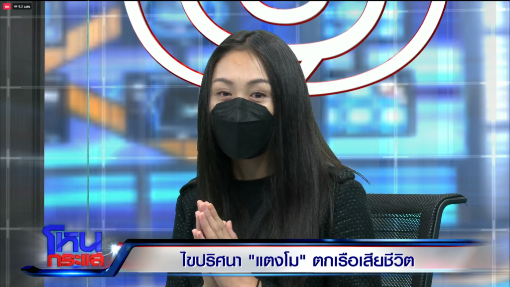 ล่าสุด “ปอ ตนุภัทร” เจ้าของเรือ “จ๊อบ นิทัศน์” เพื่อนรุ่นน้องของ ปอ และ “กระติก อิจศรินทร์” (ผจก.แตงโม) และ “แซน วิศาพัช” มาในรายการโหนกระแส เพื่อชี้แจงเรื่องราวต่างๆที่สังคมยังตั้งคำถามและคาใจ