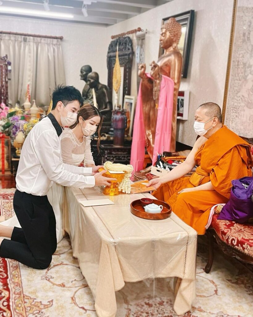 โดยสาว “แอร์” ได้มีการโพสต์ภาพลงอินสตาแกรม พร้อมกับบอกว่า “ฤกษ์เมื่อไหร่น้าาา.. ตื่นเต้นมากค่ะ!! แอร์กับไอซ์ได้เข้าไปขอฤกษ์กับสมเด็จพระมหารัชมงคลมุนีแล้วนะคะ ได้ฤกษ์แล้วจะมาบอกนะคะ🤍🙏🏻”