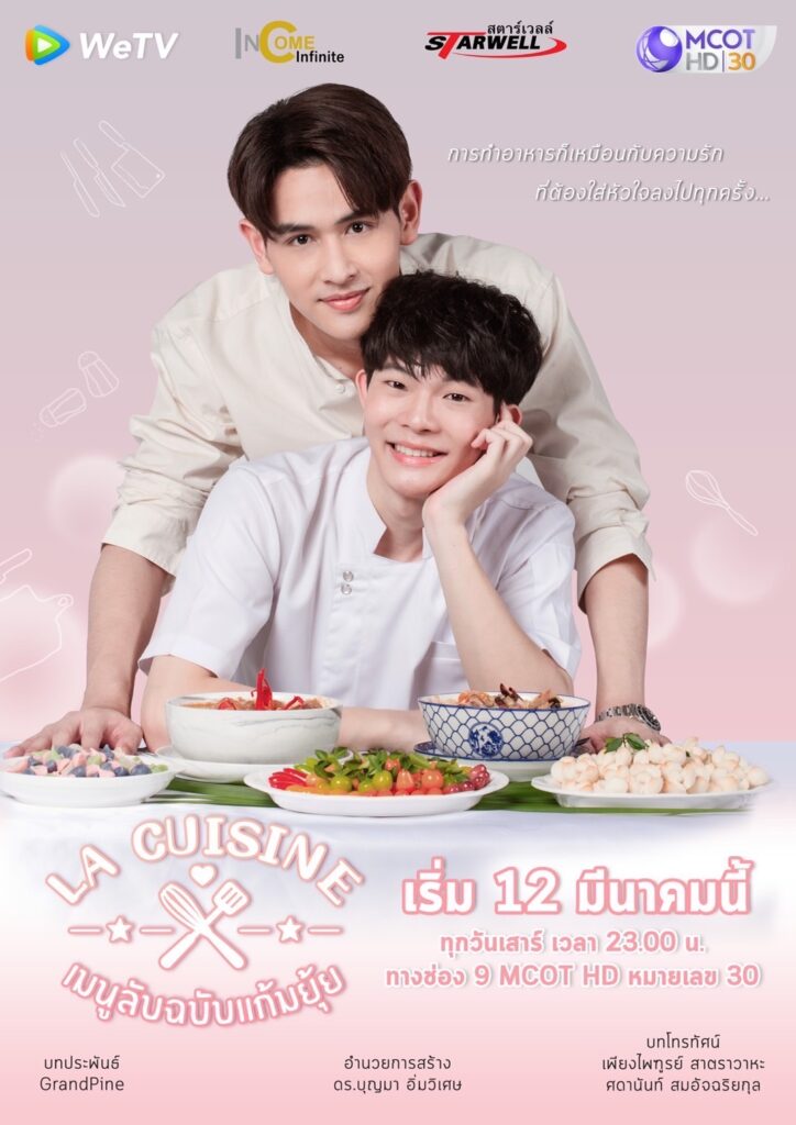 ต้องรอดู ซีรีย์วายที่จะมาเขย่าหัวใจรักที่อบอวลไปด้วยอาหารและขนมไทยกับเรื่อง La Cuisine เมนูลับฉบับแก้มยุ้ย พร้อมออนแอร์ 12 มีนาคม เวลา 23.00 น.ทางช่อง 9 MCOT HD 30 นำโดยดาราไฟแรง ป๊อป ภัทรพล , มิก มณฑล , ตั้ง ปฏิภาณ , บูม ปัณณธง , อาชว์เตชิต ฯลฯ และยังมีนักแสดงฝีมือเฉียบ มาสร้างสีสันด้วย เช่น เบลล์ เลลาณี ,แก้ว อภิรดี ,ถา สถาพร คลิกด่วนที่เพจ-ไอจี lacuisine.thhttps://www.facebook.com/lacuisine.th