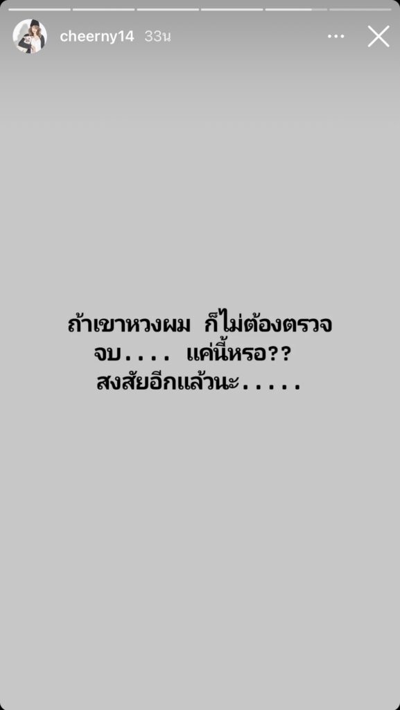 งานนี้เพื่อนสนิทอย่าง  “เชียร์ ฑิฆัมพร” ก็ได้โพสต์ไอจีสตอรี่เกี่บงกับเรื่องนี้ว่า  “ถ้าเขาหวงผม ก็ไม่ต้องตรวจ จบ แค่นี้หรอ??? สงสัยอีกแล้วนะ”