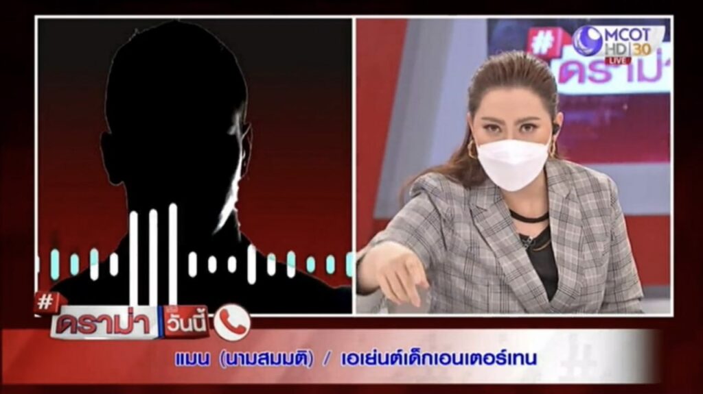 รายการดราม่าวันนี้ (7 มีนาคม 2565) ดำเนินรายการโดย บุ๋ม – ปนัดดา วงศ์ผู้ดี ผลิตในนามบริษัทเซ้นส์ เอ็นเตอร์เทนเมนท์ และ ชินะ เอ็นเตอร์ไพร์ส โดยมี ทนายรณรงค์ แก้วเพช็ร , ทนายเดชา กิตติวิทยานันท์ เป็นแขกรับเชิญ เพื่อพูดคุยประเด็น “แม่จบ สังคมไม่จบ… อุบัติเหตุ หรือ เจตนา ความจริงที่ต้องไม่เลือนหายไปกับสายน้ำเจ้าพระยา” โดยมีบางช่วงบางตอนของรายการ บุ๋ม ปนัดดา ได้ต่อสายตรง โฟนอิน คุณแมน (นามสมมุติ) เอเย่นต์เด็กเอนเตอร์เทน เพื่อล้วงลึกวงการงานเอนเตอร์เทน งานกินข้าว ที่มีค่าตัวสูงถึงหลักล้าน!! โดยมีบางช่วงบางตอนมีการสนทนาดังนี้