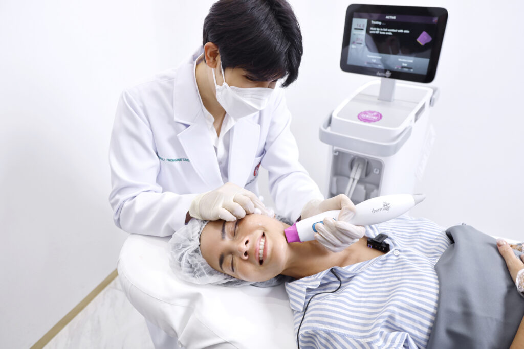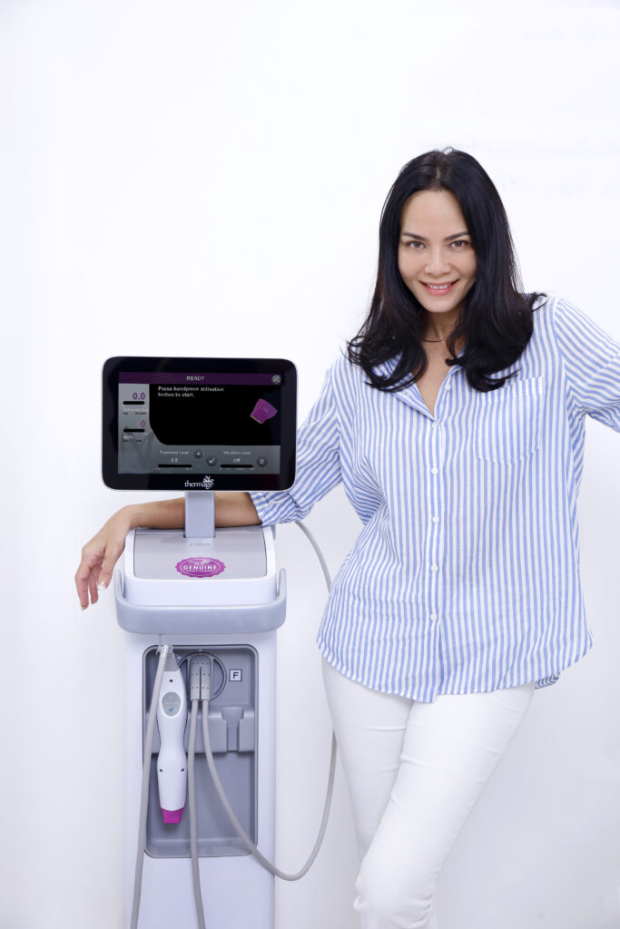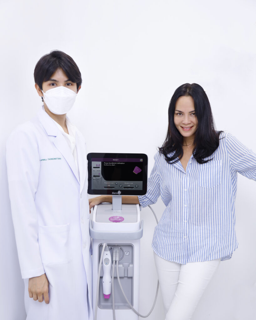 “พิม ซอนย่า คูลลิ่ง” เจ้าตัวยอมรับว่า “เป็นพรีเซ็นเตอร์ให้ Ulthera เมื่อหลายปีที่แล้ว รู้ดีว่าจะต้องทนเจ็บขนาดไหนเพื่อความสวย แต่เมื่อได้ลอง Ulthera SPT+ รุ่นใหม่ล่าสุดที่ THE KLINIQUE เซอร์ไพรส์มากเพราะไม่เจ็บเลย แถมยกกระชับได้มากกว่าเดิม หลังจากนั้นต่อด้วยเหลากรอบหน้าให้คมด้วย Thermage FLX PRO “เสียวมาก” เป็นครั้งแรกที่ยอมทำ Thermage เพราะเพื่อนทุกคนกรอกหูว่าเหมือนเตารีดนาบหน้า เลยหนีไม่กล้าทำ แต่พอได้ทำจริงๆ กับที่นี่คือไม่เจ็บเลย ชิลมาก ลุกมาสวยเลย!!” ซึ่งอีกเคล็ดลับที่ยังไม่เคยบอกใคร นอกจากจะดูแลผิวหน้าแล้ว ส่วนอื่นก็สำคัญ เลยจัด Ulthera SPT+ ที่มือ และหัวเข่าอีกด้วย “หน้าตึงแล้วมือจะเหี่ยวไม่ได้ เดี๋ยวโป๊ะ” พิมบอกพร้อมโชว์หลังมือเรียบเนียนขึ้นมาอย่างมั่นใจ