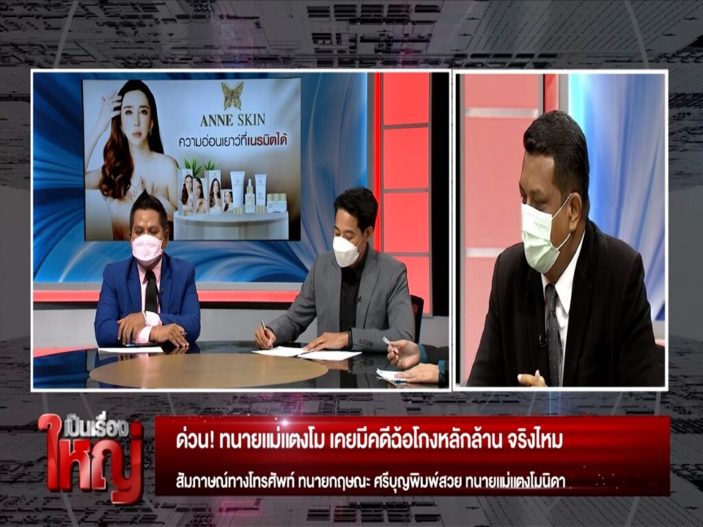 รายการ เป็นเรื่องใหญ่ ออนแอร์ทุกวันจันทร์-ศุกร์ เวลา 17.05 น. ทางช่อง JKN 18 ดำเนินรายการโดย “เพชร กรุณพล เทียนสุวรรณ” ได้สัมภาษณ์ ทนายรณณรงค์ แก้วเพชร และ นายแพทย์สิทธา ลิขิตนุกูล (หมอกอล์ฟ) เจ้าของเพจคุณหมอสตอรี่ กรณีที่ “ทนายตั้ม ษิทรา เบี้ยบังเกิด” ถูกพี่ชาย “แตงโม นิดา พัชรวีระพงษ์” เท ก่อนจะมีเรื่องข้อมูลของ “ทนายกฤษณะ ศรีบุญพิมพ์สวย” ทนาย “คุณแม่ภนิดา ศิระยุทธโยธิน” ที่ถูกแฉว่าโกงเงินเคยเป็นคดีความเมื่อ 4-5 ปีก่อน
