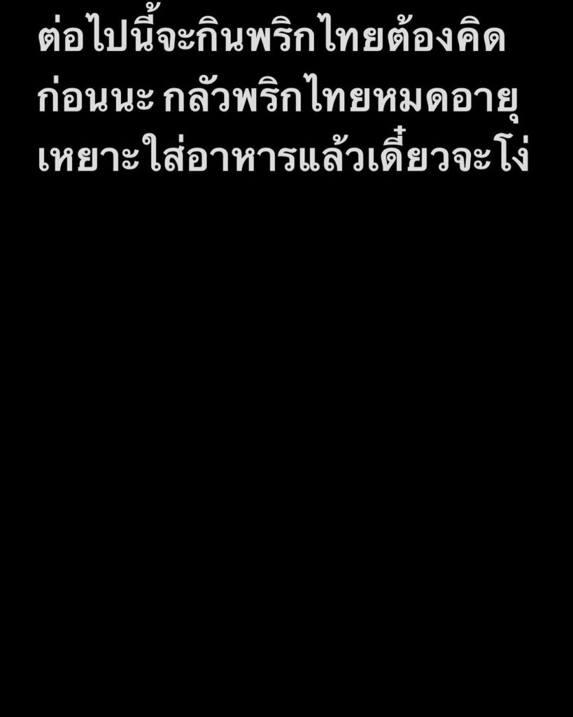 พร้อมกับเขียนแคปชั่นเอาไว้ว่า “ตามนี้นะ ถ้าอยากกินพริกไทยเยอะๆ มันก้ออร่อยมากนะ ฉลาดด้วยนะ ไม่รู้ฉลาดยังไง แต่ไม่โง่แน่นอน ถ้าโง่คงกินของเทียม ถ้าโง่กูโง่เอง ไม่เกี่ยวกับพริกนะ เพราะเป็นเครื่องปรุงที่อร่อยมากครับ หอมสุดๆ ขอเรียนให้ทราบไว้ก่อน”