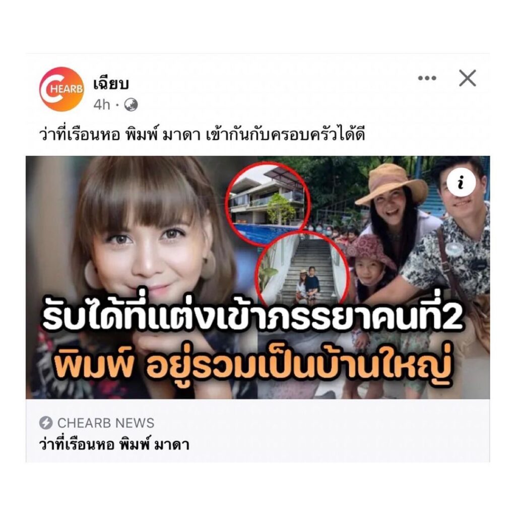 ทำเอาปรี๊ดแตกไม่น้อย สำหรับนักร้อง นักแสดงสาว “พิมพ์ พิมมาดา” หรือ “พิมพ์ ซาซ่า” หลังถูกเพจหนึ่งพาดหัวข่าวในทำนองว่า รับได้ที่แต่งเข้าภรรยาคนที่ 2 อยู่รวมเป็นบ้านใหญ่ จนทำให้คนเข้าใจผิดคิดว่าเป็นเมียน้อย ลั่นอยู่วงการมา 20 ปี ใช้ชีวิตอย่างระมัดระวัง พร้อมเผยความสัมพันธ์ของตน และเชฟฟาง เป็นอย่างไรขอให้เป็นคนพูดจากปากเอง