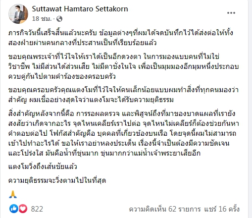 ขอบคุณพระเจ้าที่ไว้ใจให้เราได้เป็นอีกดวงตา ในการมองแบบคนที่ไม่ใช่วิชาชีพ ไม่มีส่วนได้ส่วนเสีย ไม่มีตาชั่งในใจ เพื่อเป็นมุมมองอีกมุมหนึ่งประกอบควบคู่กันไปตามคำร้องของครอบครัว ขอบคุณครอบครัวคุณแตงโมที่ไว้ใจให้คนเล็กน้อยแบบผมทำสิ่งที่ทุกคนมองว่าสำคัญ ผมเชื่ออย่างสุดใจว่าแตงโมจะได้รับความยุติธรรม