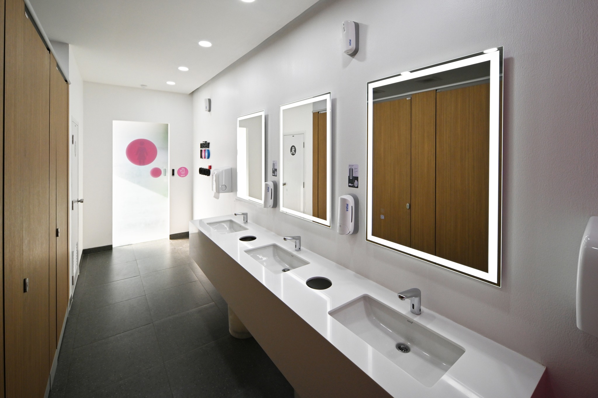 สินค้าสุขภัณฑ์และก๊อกน้ำ COTTO ภายในห้องน้ำ เน้นสร้างประสบการณ์ใหม่ให้ผู้ใช้งาน ภายในห้องน้ำแบ่งเป็น ห้องน้ำชาย ห้องน้ำหญิง ที่เพียบพร้อมด้วยสิ่งอำนวยความสะดวก เน้นการใช้งานอย่างปลอดภัยได้มาตรฐานตั้งแต่ประตูทางเข้าห้องน้ำ ภายในติดตั้งก๊อกน้ำ Touchless Series ที่ใช้ระบบเซ็นเซอร์ในการใช้งาน อ่างล้างหน้าที่เคลือบสาร ultra clean+ เอกสิทธิ์เดียวจาก COTTO ที่ช่วยลดการสะสมของแบคทีเรียได้เอง 99% จึงช่วยลดความเสี่ยงต่อการสัมผัสกับเชื้อโรค และช่วยเพิ่มความมั่นใจในการใช้งาน นับว่าเป็นการยกระดับความปลอดภัย และความสะดวกสบายมากขึ้น อีกทั้งยังมีสิ่งอำนวยความสะดวกต่างๆ อาทิ เช่น เครื่องจ่ายแอลกอฮอล์ เครื่องจ่ายน้ำยาเช็ดฝารองนั่ง เครื่องจ่ายน้ำหอม เครื่องจ่ายสบู่ ส่วนบริเวณภายนอก ก็ยังใช้สอยประโยชน์ได้ ซึ่งทั้งหมดนี้ มีค่าบำรุงรักษาเพียง 10 บาทต่อการใช้งานหนึ่งครั้ง
