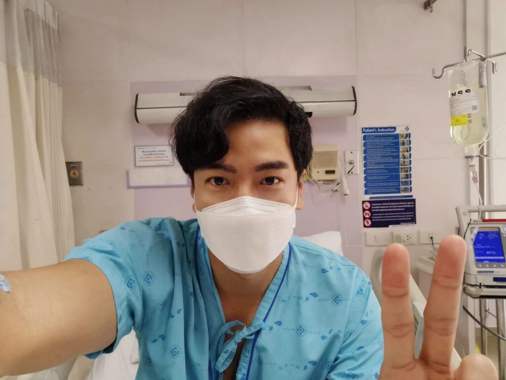 โดยนักร้องและนักแสดงหนุ่ม โย่ง อาร์มแชร์ ได้โพสต์รูปตัวเองขณะนอนอยู่ที่โรงพยาบาลพร้อมข้อความลงในเฟซบุ๊กว่า