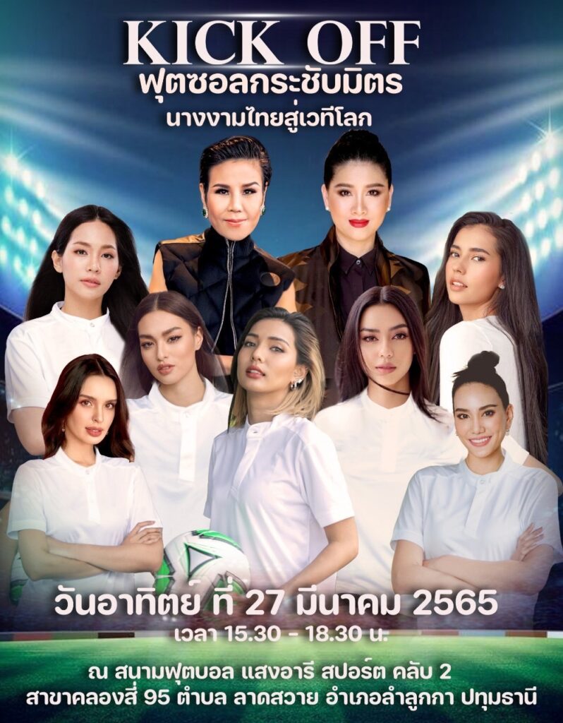 ครั้งแรกของโลก และครั้งแรกในประวัติศาสตร์ของประเทศไทยกับการแข่งขันฟุตซอลนางงามกระชับมิตรเพื่อการกุศลและมิตรภาพอันสร้างสรรค์ ระหว่างเวทีนางงาม นับเป็นการซัพพอร์ตกันและกัน เพื่อสายสะพายไทยแลนด์ อีกทั้งยังได้รักษาสุขภาพที่ดี ถือกันว่าเป็นการดูแลรักษาสิ่งแวดล้อมและทรัพยากรมนุษย์ที่ดีที่สุด