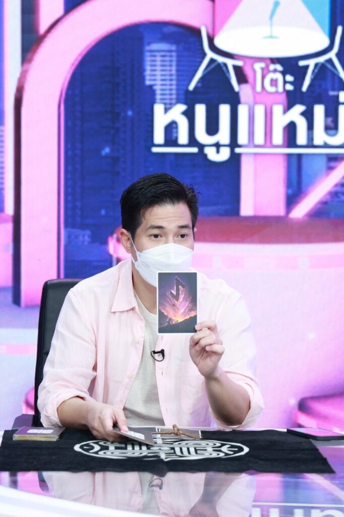“ใบแรกนะครับ อักษรตัวนี้เกี่ยวกับความตาย ใบที่1 คืออดีตปัจจุบันอนาคต ไพ่บนเรือเกี่ยวข้องกับความตาย ใบที่2 มีอำนาจบารมี มีผู้ใหญ่ค้ำจุนให้การอุปถัมถ์ ให้การสนับสนุนอยู่ ส่วนบทสรุปของเขาเรื่องราวเหล่านี้เนี้ย เรื่องราวที่เกิดขึ้นมันจะยืดยาวออกไปแบบไม่สิ้นสุดเลย ไพ่แบบนี้อักษรเกิร์ลหมายถึงฤดูกาลทุกสิ่งจะวนกลับมาเรื่อยๆ มันจะวนออกไปแล้ววนกลับมา”