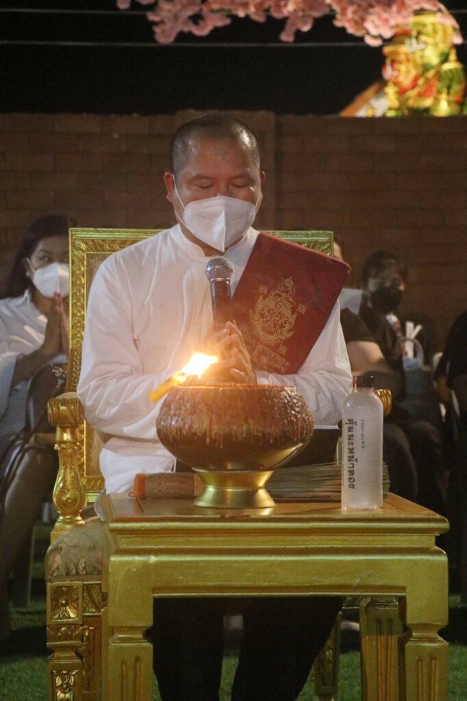 พิธีเริ่มขึ้นเมื่อพระอาทิตย์ตกดิน ฟ้ามืดสนิท ได้ฤกษ์ดี เปิดงานด้วยการ “รำโหรีอีสาน” ถวายองค์พระราหู โดยสองสาวสวยดีกรี รองนางสาวเชียงใหม่ ประจำปี 2565 จากนั้น อาจารย์สุบิน นะหน้าทอง ประธานใหญ่ในพิธี เริ่มจุดเทียนเอาฤกษ์เอาชัย โดย แม่ครูฟ้าใส เป็นประธานจุดเทียนพระราหู จากนั้นพิธีกรก็เชิญตัวแทนดารานักแสดงจุดเทียนพระราหู และเริ่มพิธีสวดมนต์ถวายพระราหู