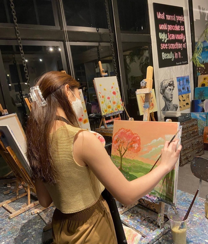 ชอบนะคะเเต่ไม่ได้วาดเก่ง เเค่รู้สึกว่าการวาดรูปเป็นวิธีที่ทำให้มีสมาธิเเล้วก็เหมือนได้พักผ่อน เเพรจะชอบวาดเป็นลายมินิมอลเเบบเเค่เป็นตัวเส้นชอบวาดออกมาเป็น ดอกไม้ ต้นไม้ อันเล็กๆเลยค่ะ วาดไปเรื่อยๆตอนที่มีอารมณ์ศิลปิน เเล้วก็ชอบเพ้นท์เฟรมค่ะ ใช้สีอะคริลิคกะพู่กันระบายใส่เฟรมเลย ในใจชอบที่จะทำเป็นรูปวิวที่นู่นที่นี่ เเต่ฝีมือไปไม่ค่อยถึงเเต่ถ้าแพรว่างก็ทำอยู่ดีค่ะ