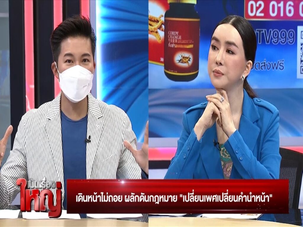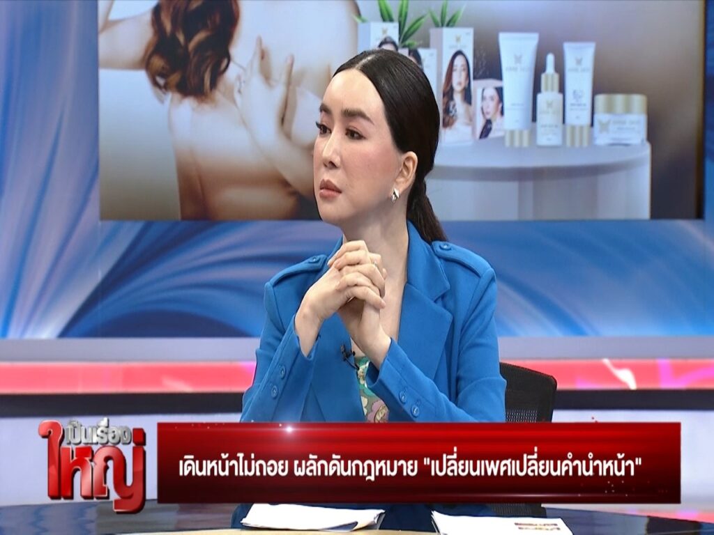 แอน : “ใช่น่ะสิ นี่เก่งมาก แต่ทำไมรัฐบาลไม่คิดนะ ไม่เข้าใจ พยายามส่งเรื่องมานานแล้ว วันนี้ทำไมแม่ต้องมาคุยเอง เพราะว่าเราคุยมาตั้งแต่ 2019 gender title change with gender change คือการเปลี่ยนเพศเปลี่ยนคำนำหน้า แปลงเพศเสร็จเราต้องมีสิทธิ์เป็นผู้หญิง คือเราจะเดินทางเราจะทำงาน ศักดิ์ศรีของการเป็นผู้หญิงเต็มตัว การมีลูกมีสามี การทำงาน การจดทะเบียนสมรส ตลอดจนเรื่องกฎหมายทุกสิ่ง การหางานก็เป็นเรื่องสำคัญ มันคือ dignity ของมนุษย์ ตื่นเช้ามาคนที่เป็นผู้ชายแล้วได้บัตรประชาชนมาเป็นนางสาวคุณรู้สึกยังไงคะ ผู้หญิงได้บัตรประชาชนรัฐบาลบังคับให้คุณใช้นานคุณรู้สึกยังไงคะ เหมือนกันหมดเลยค่ะ มันไม่ใช่ตัวเราแล้วเรารู้สึกเสียศักดิ์ศรี เราเป็นผู้หญิงเราต้องได้นางสาว แต่สิ่งนึงที่ต้องพูดอยู่เสมอคือต้อง track back ได้ หมายถึงว่า ใบเกิดไม่เปลี่ยน ใบเรียนหนังสือไม่เปลี่ยน ใบทะเบียนบ้านไม่เปลี่ยน จะเปลี่ยนให้ตั้งแต่วันที่คุณแปลงเพศเสร็จ ของเก่าเราจะไม่ปฏิเสธตัวเอง ต้องอยู่กับความจริง แต่พอเราแปลงปุ๊บ ให้เกียรติเราเถอะค่ะ ใครแปลงเป็นผู้ชายก็เปลี่ยนให้เขาเป็นนายเพราะเขามีอวัยวะเพศชายแล้ว”