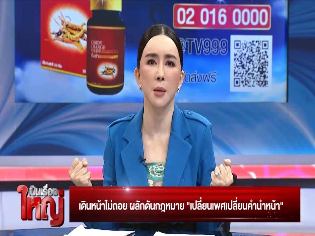 แอน : “อุ้ยตาย แม้กระทั่ง miss universe เขายังปล่อยให้คนข้ามเพศขึ้นไปประกวดเลย เขาไปไกลกันขนาดนั้น แล้วเมื่อวานก็เจอนะ ท่านทูตอังกฤษ เขาเป็นคู่เกย์มาประเทศไทยก็ยังบอกกับเราเลย ให้เกียรติทาง JKN มาก ว่าประเทศไทยควรให้ทันยุคทันสมัยขนาดอังกฤษเขายังส่งคู่เกย์มาเลย เพื่อให้เขารู้ว่าเขายอมรับกันเรียบร้อยแล้ว เพราะฉะนั้น LGBTQ เป็นเรื่องปกติธรรมดามาก วันนี้ต้องเปลี่ยนเพศและคำนำหน้า ต้องเดินเรื่องให้จบค่ะ”
