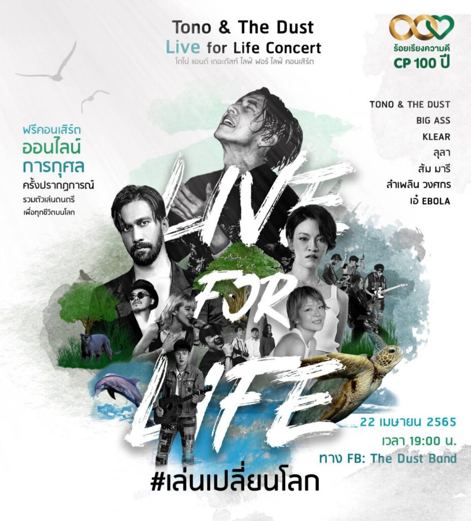 ฟิตเต็มร้อย นักร้องขาร็อค “โตโน่-ภาคิน คำวิลัยศักดิ์” พร้อมส่งความมันส์ บนเส้นทางสายดนตรีของ“โตโน่” และเพื่อนร่วมวง Tono & The Dust ผ่านการแสดงดนตรีอย่างโชกโชนแต่พวกเขายังไม่เคยมีคอนเสิร์ตเป็นของตัวเองเลยสักครั้ง!!! ครั้งนี้จึงถือเป็นคอนเสิร์ตเต็มรูปแบบครั้งแรกกับ “Tono and The Dust Live For Life #เล่นเปลี่ยนโลก” ฟรีคอนเสิร์ตเพื่อสิ่งแวดล้อม จัดโดย โครงการเก็บรักษ์ ร่วมกับ เครือเจริญโภคภัณฑ์ (ซีพี) ภายใต้โครงการร้อยเรียงความดี CP100ปี และ ศิลปิน Tono & The Dust เพื่ออนุรักษ์ฟื้นฟูทรัพยากรทางทะเลไทย ที่ไม่ใช่เพียงแค่การร้องเพลง เล่นดนตรี แต่ยังผสมผสานความเป็นโชว์ผ่านการเล่าเรื่องราวและความรู้สึกลงในบทเพลงที่สะท้อนให้เห็นถึงปัญหาของสังคมและสิ่งแวดล้อม พร้อมศิลปินรับเชิญเพื่อนพี่น้องในวงการที่มาร่วมกันอย่างคับคั่ง อาทิ เจ๋ง Big Ass , แพท Klear , เอ๋ Ebola , ลำเพลิน วงศกร , ส้ม มารี , ลุลา