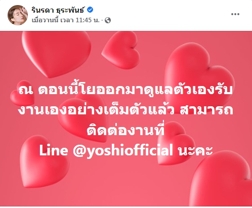 ขอรับงานเอง! “โยชิ รินรดา” ประกาศเป็นอิสระ ลั่นพร้อมลุยกับทุกปัญหา